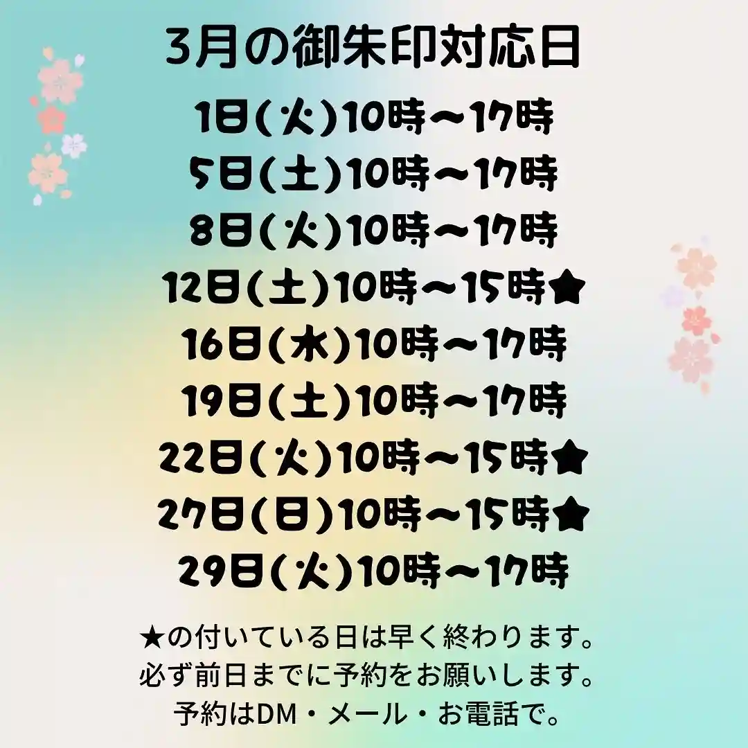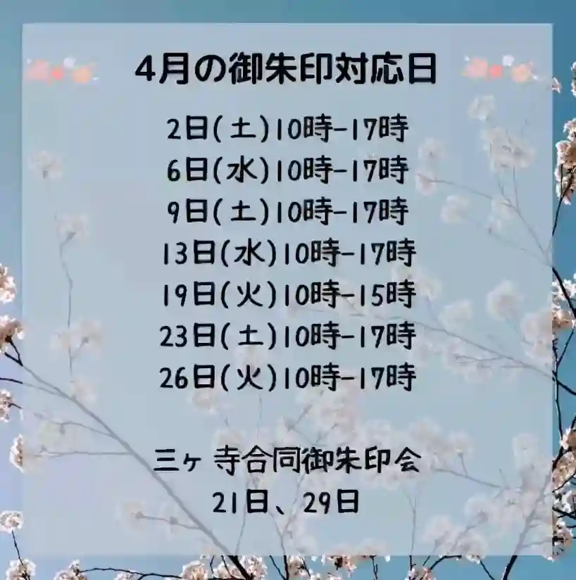 4月の御朱印対応日一覧