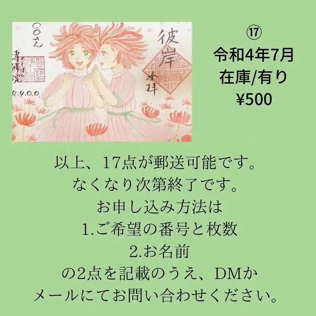 書置き御朱印⑰、問い合わせ方法
