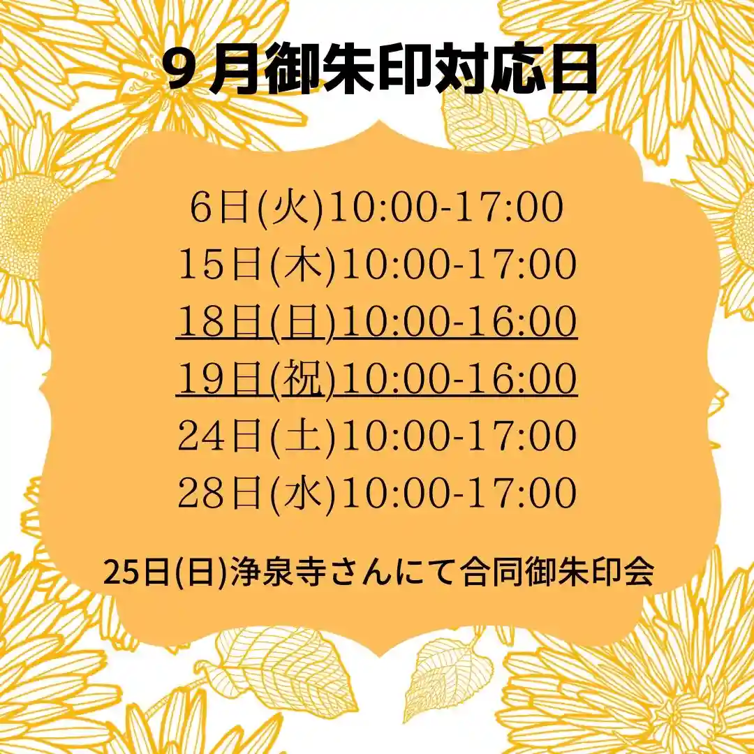 9月の御朱印対応日一覧