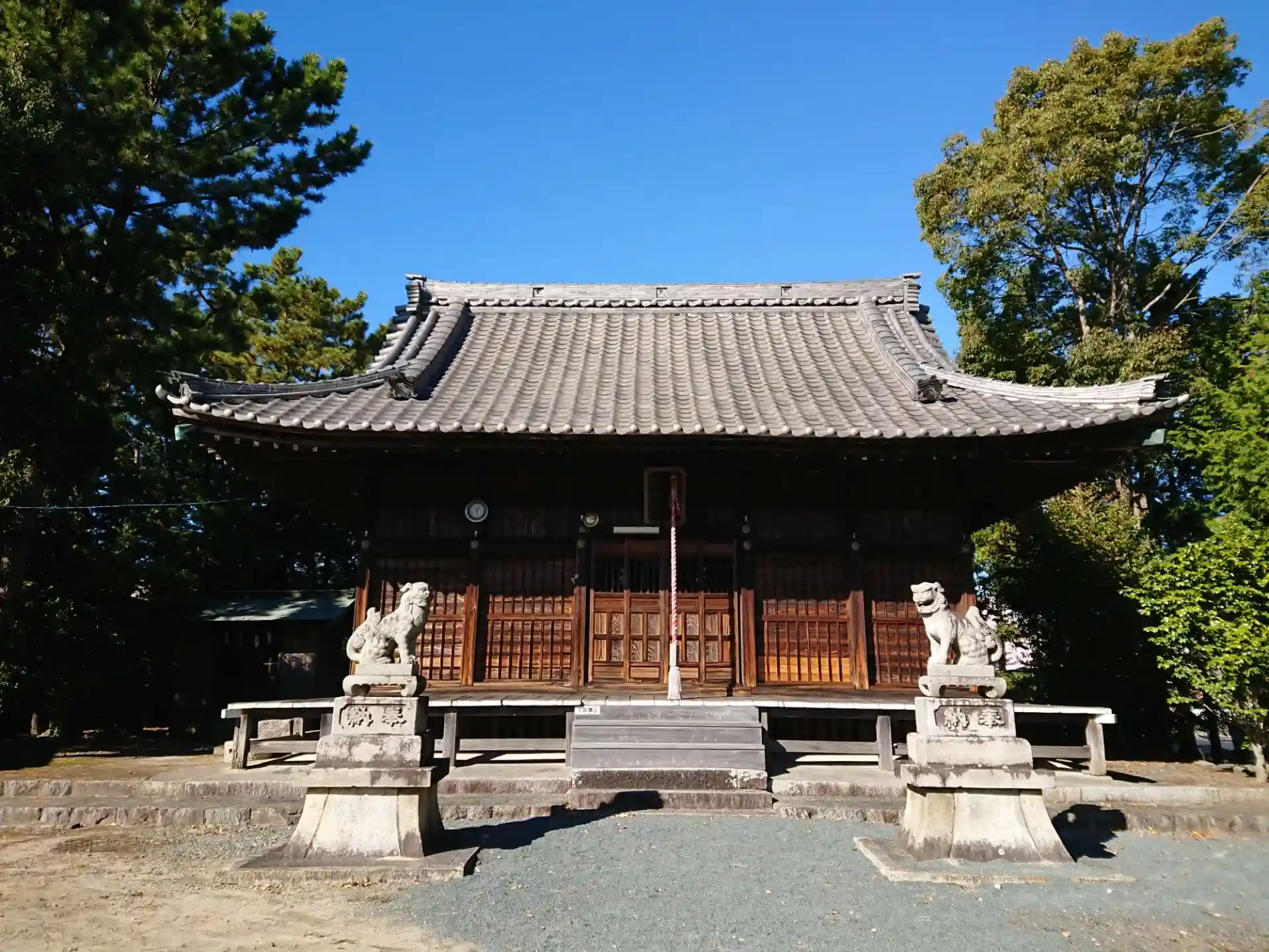 住宅地の中にありながら広い境内に社殿があります。