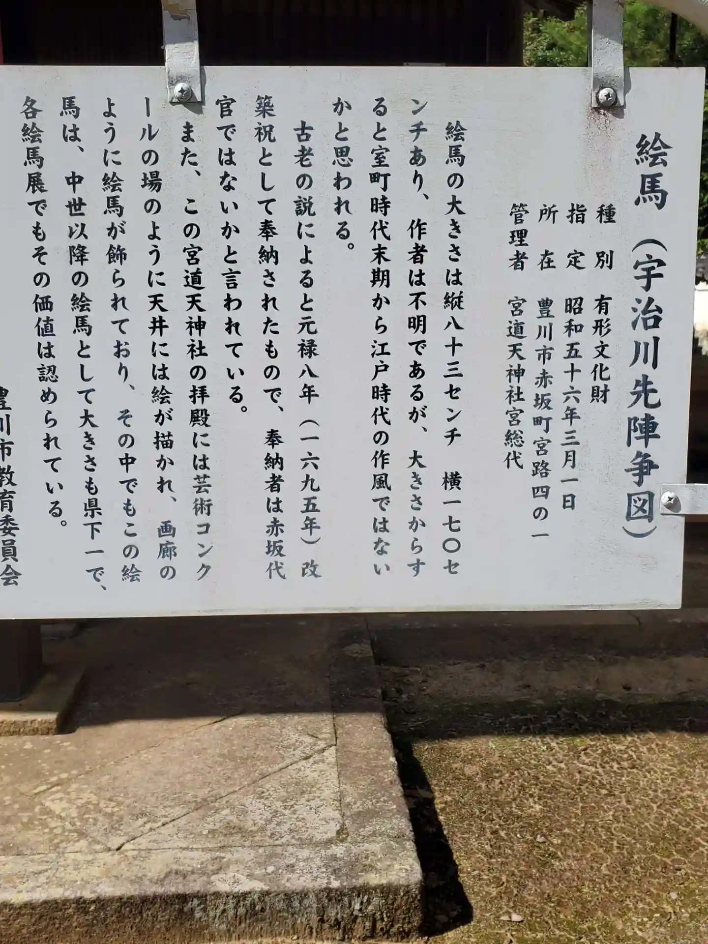 旧東海道、御油の松並木を西へ御油宿の背後の山間に鎮座しています。大きな絵馬と天井画が見どころです。…