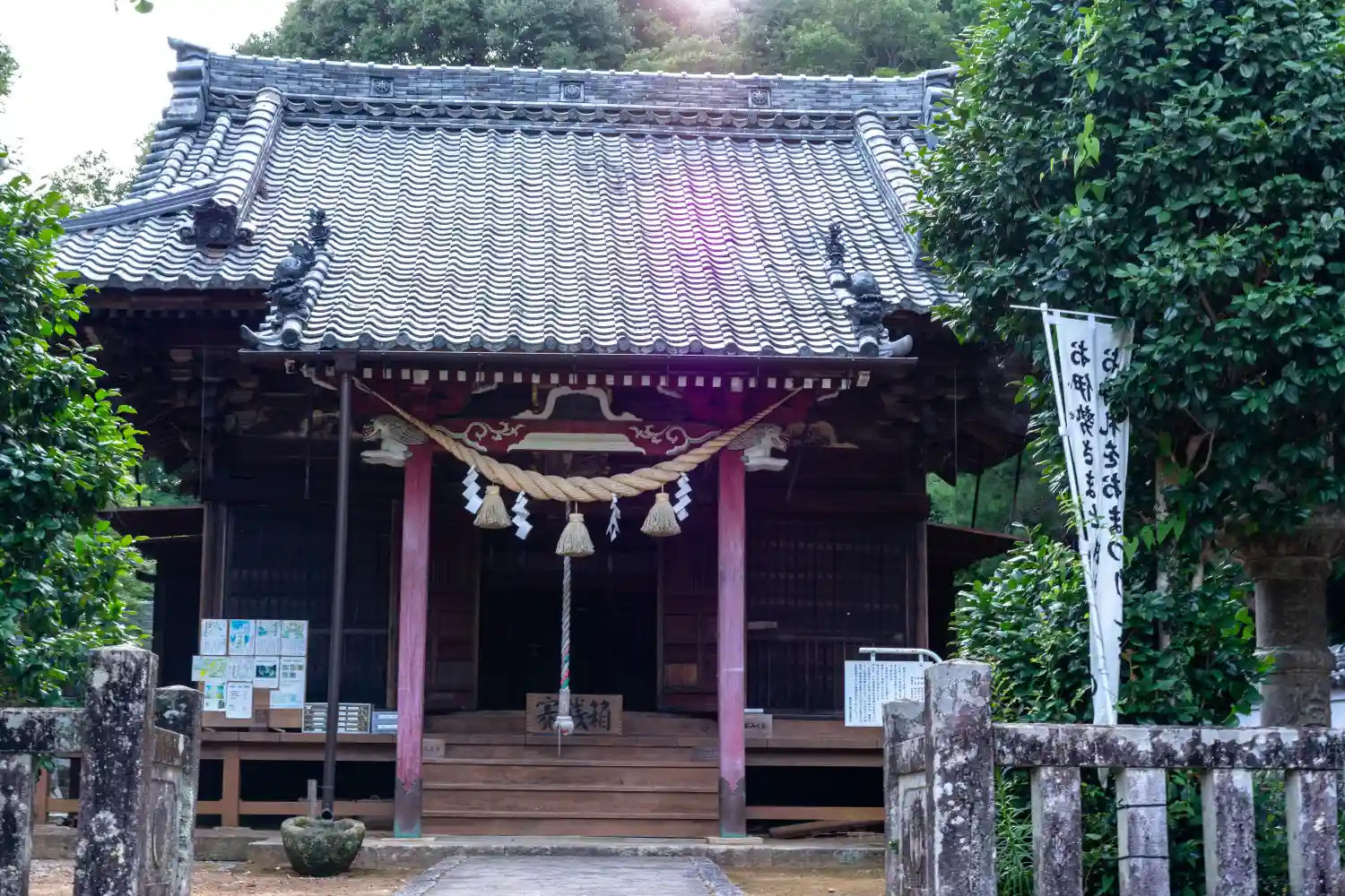 山の中に向かう道沿いに現れます。こちらの神社は関係者がいるようで、御朱印やお守り他いろいろありまし…
