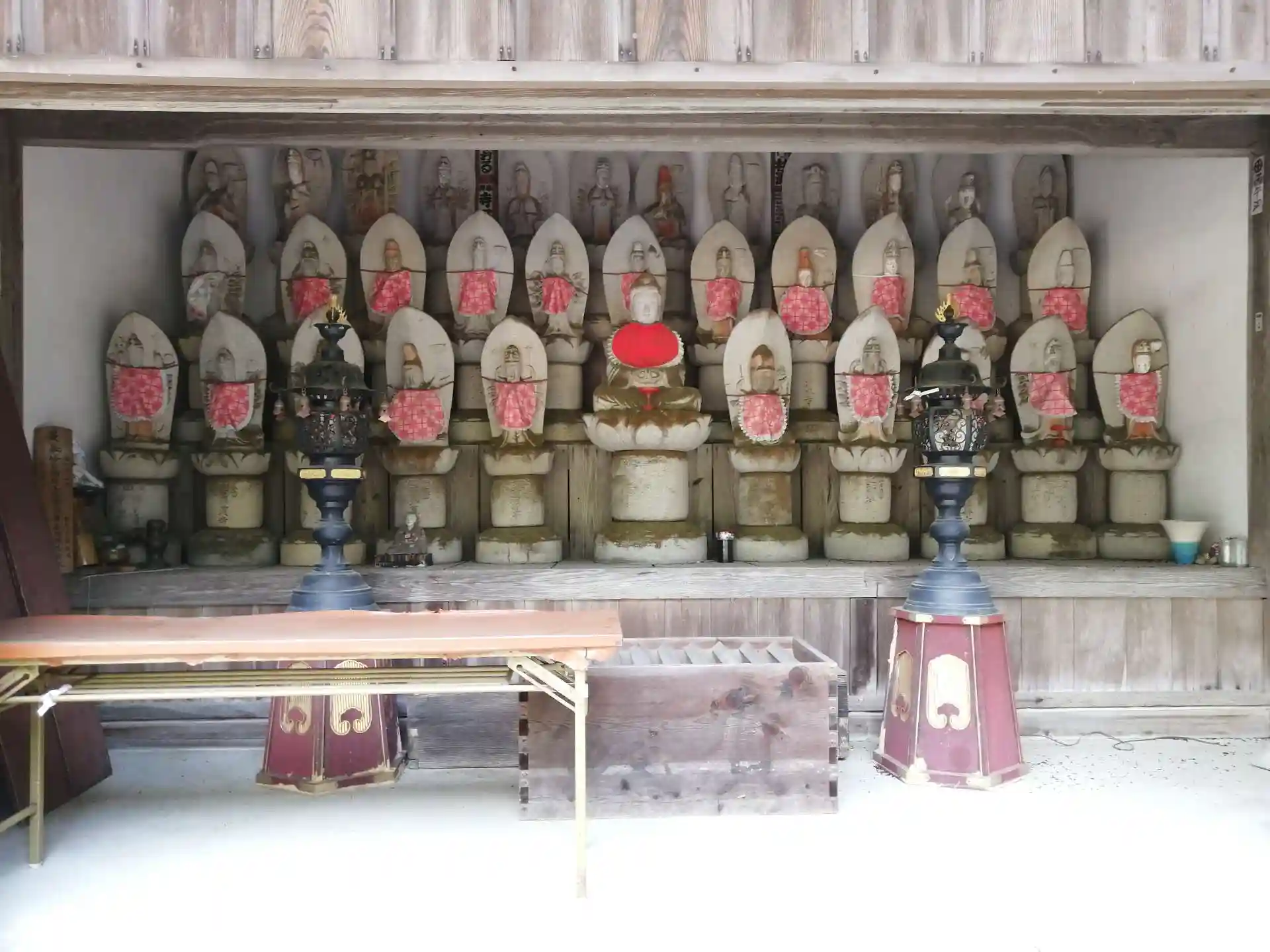 護摩壇があるため元々は五大明王が本尊だったが、文殊菩薩が引き取られて来てからその文殊菩薩が本尊に代わったそうです。