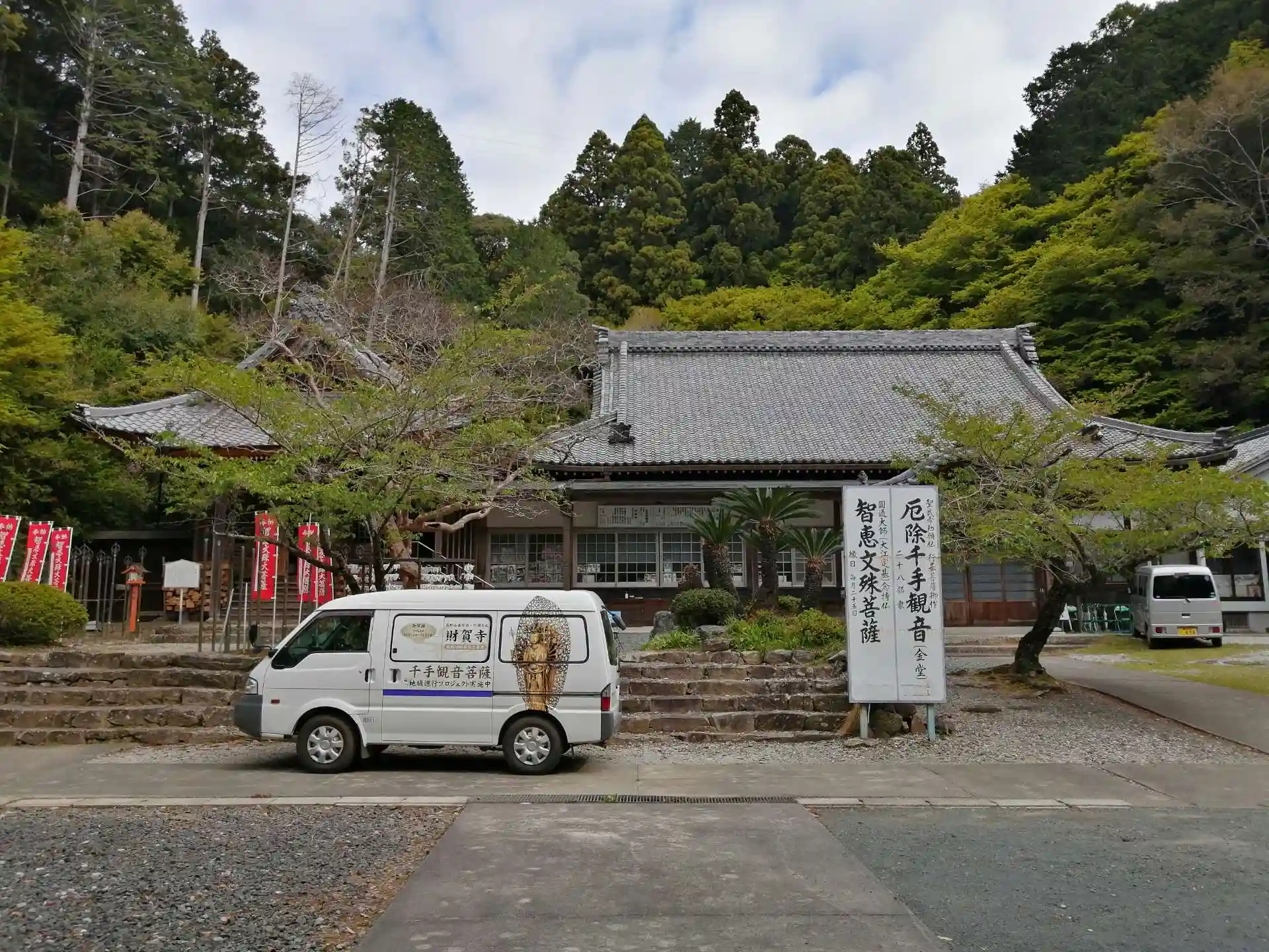 仁王門をくぐって約400段の石段を上ると本堂ですが、車の場合は本堂の少し下にある本坊や文殊堂の近くに停めてから上がれます。