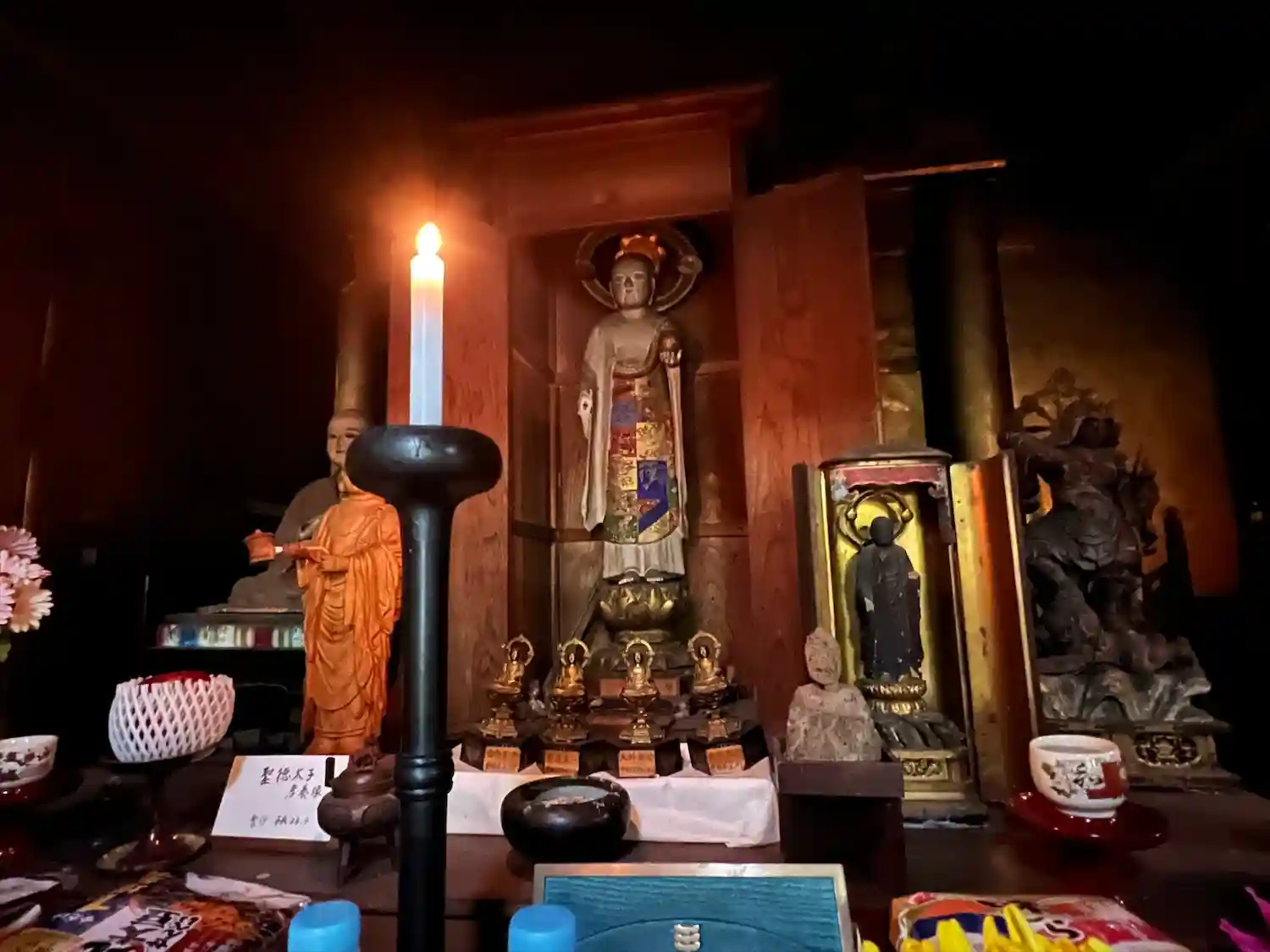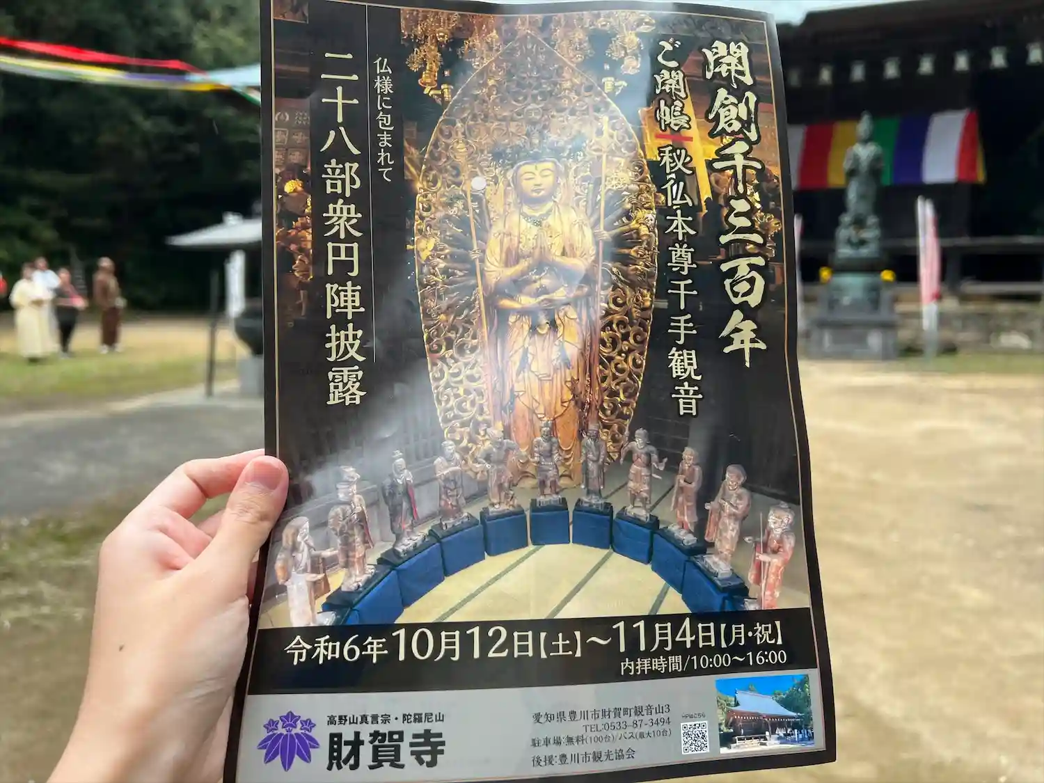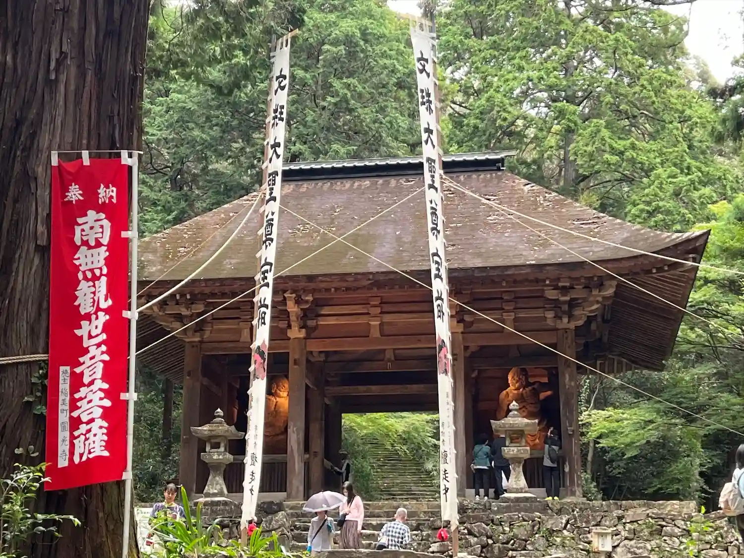 財賀寺の仁王像は3分100円で光ります。箱に100円を入れるとライトアップ。セルフで演出できます。この日は二十八部衆円陣披露初日でした。秘仏本尊千手観音像のご開帳は少し前から始まってました。全員まとめて会えて本当に良すぎました。文殊堂の本尊以外は撮影OK。太っ腹すぎ。