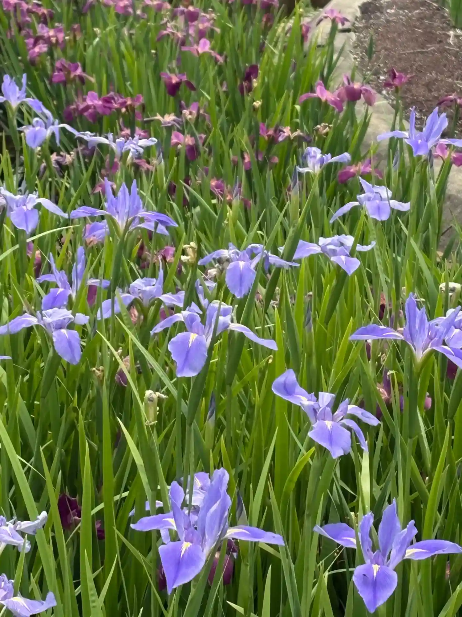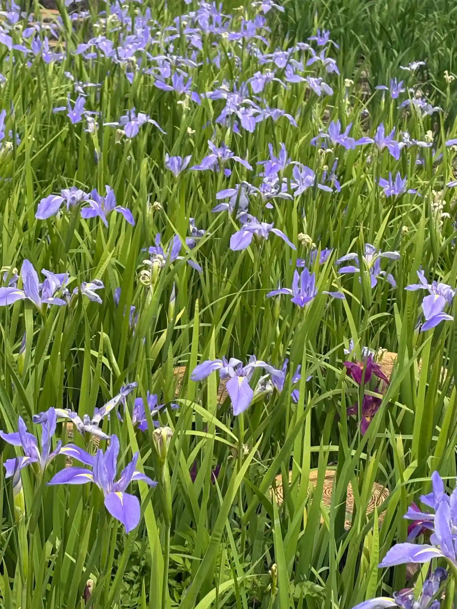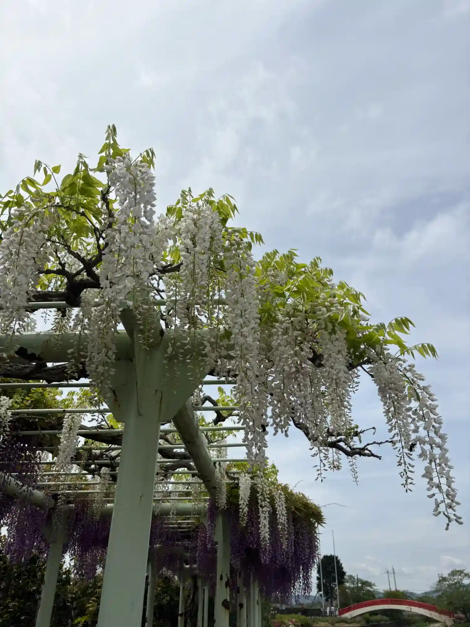 雰囲気抜群の赤いアーチ橋の先に菖蒲園がある。