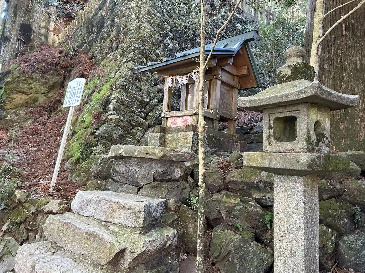 里宮にはお参りしてるけど奥宮にも是非お参りしてみたいということで🚗➰本宮山スカイラインの山頂🅿️に車を停めると岩戸神社の赤い⛩️が見えたので軽い気持ちで歩いて言ったのですが‥行きは下りの石の階段でかなりの傾斜。手摺りがついているけれどこの季節かなり冷たい🧊足を踏み外したらと写真を撮るのも忘れました💦