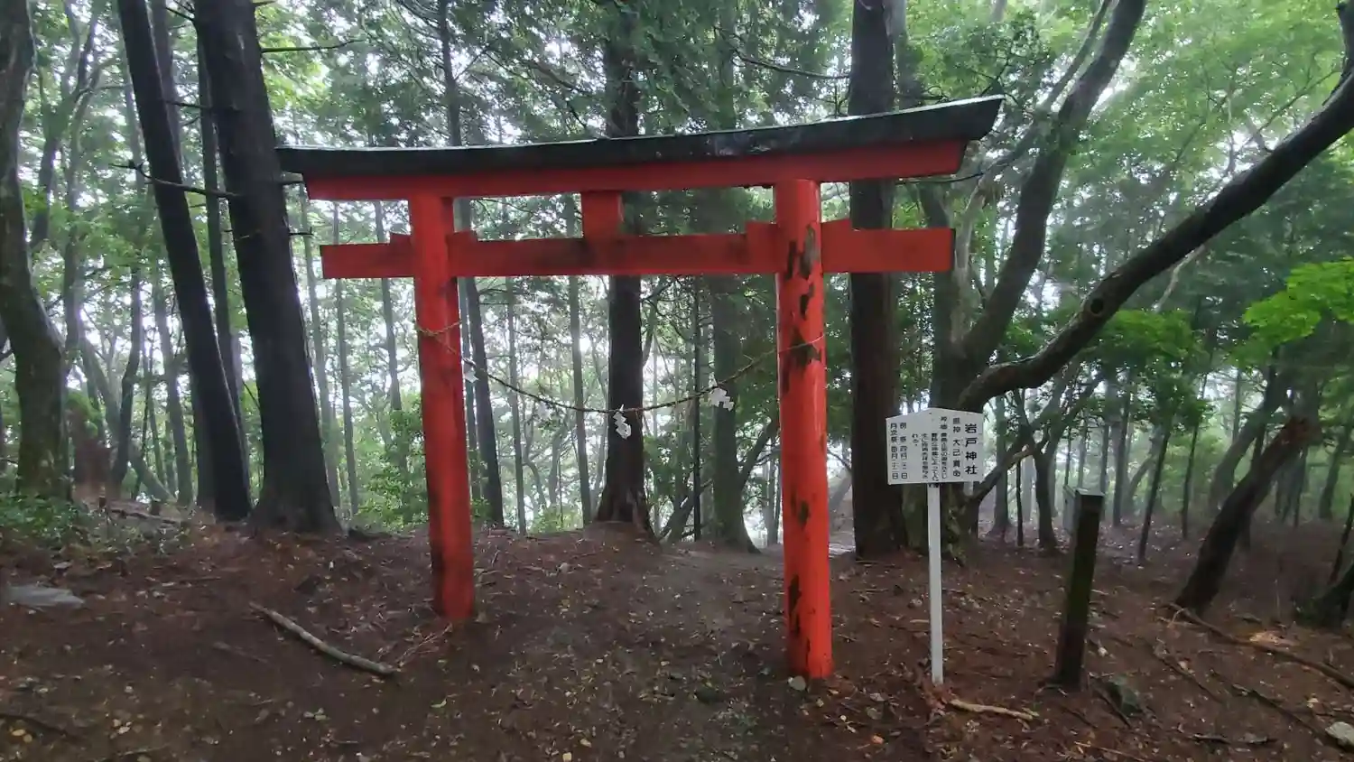 登山道の脇に鳥居が建っていて、崖を下って行きます。