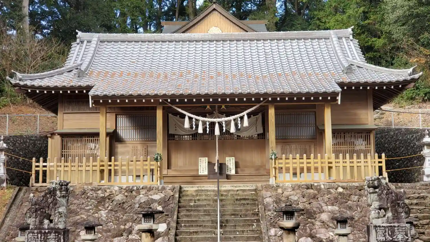 木々の中にある長い石段を上りきったら、拝殿が目に入ります。なかなか石段を登るのは大変でした。本殿は…