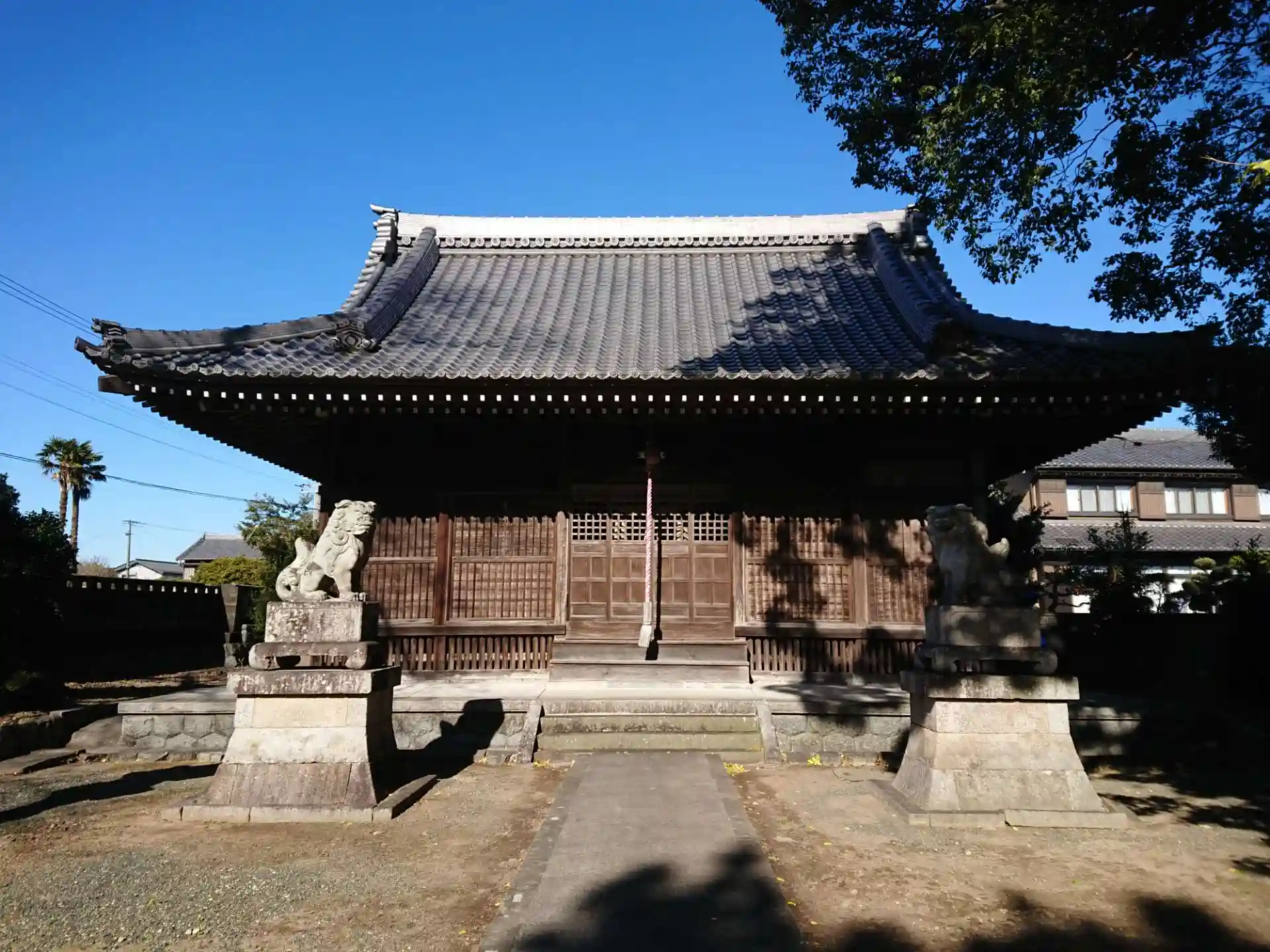 少し離れた通りからも見えます。境内に大きなイチョウがありとても綺麗です。