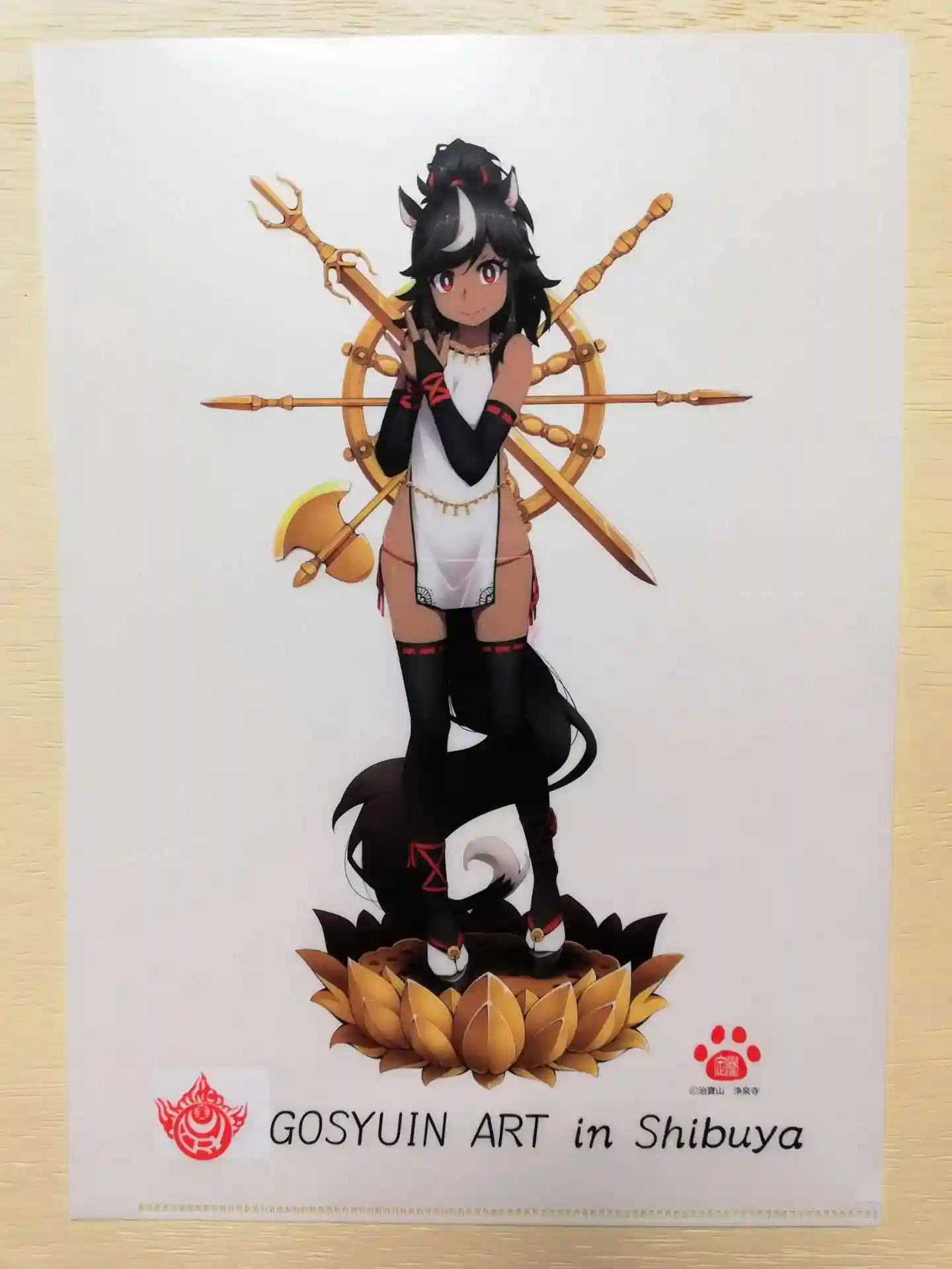 御朱印アート展示会のキービジュアル、渋谷スクランブルに佇む聖観音様をあしらったクリアファイル。ほかにトートバッグもありました。