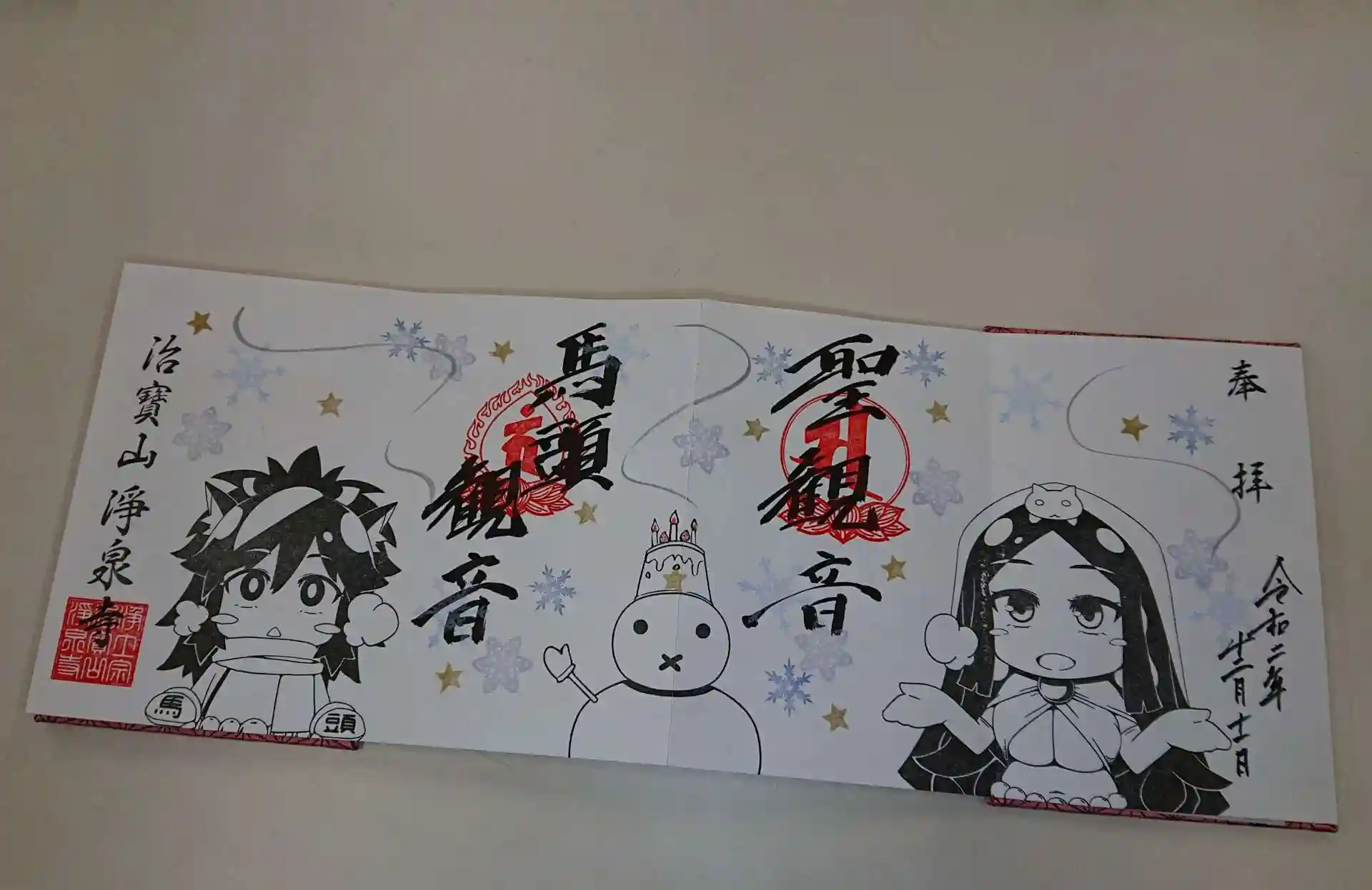 愛知県豊川市の淨泉寺です。ご住職のデザインした萌え系の御朱印が人気のあるお寺です。ちょっと冒険して参拝して御朱印を頂いてきました。誕生月の特別御朱印は2ヶ月待ち。預ける御朱印帳を持ってなかったのですが、直書きのサンタクロースの頭にローソクを立ててくれました。