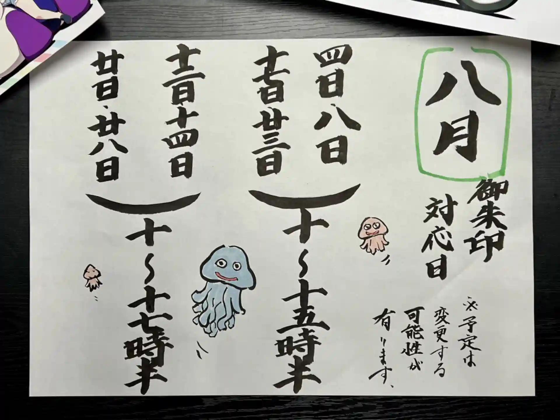今月の御朱印対応日は写真の通りです。