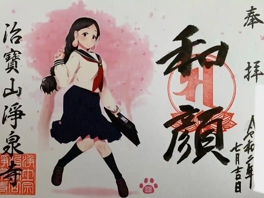 4月の御朱印のテーマは新入学ということでセーラー服の聖観音様です