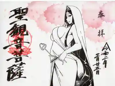 4月の御朱印のテーマは新入学ということでセーラー服の聖観音様です