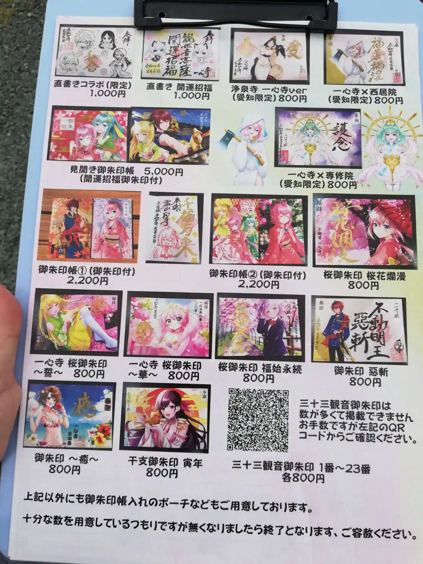 カラフル御朱印のお品書き。注文票もありスムーズでした。