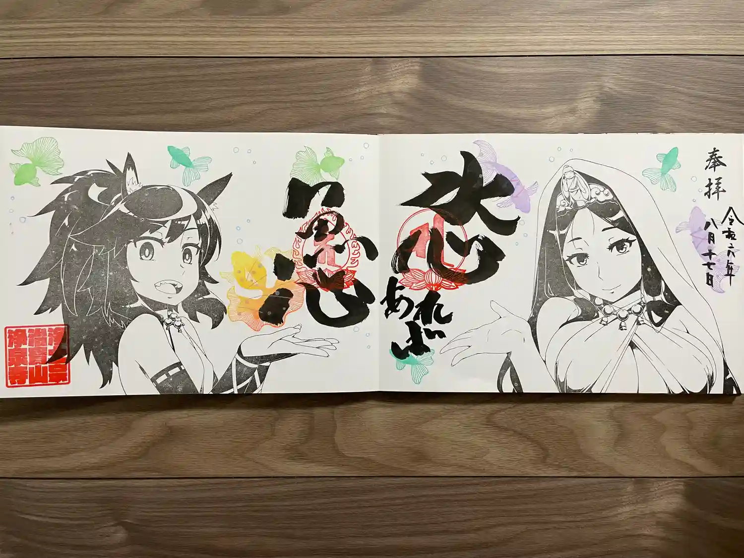 見開きサイズ御朱印帳。聖観音さまと馬頭観音さま