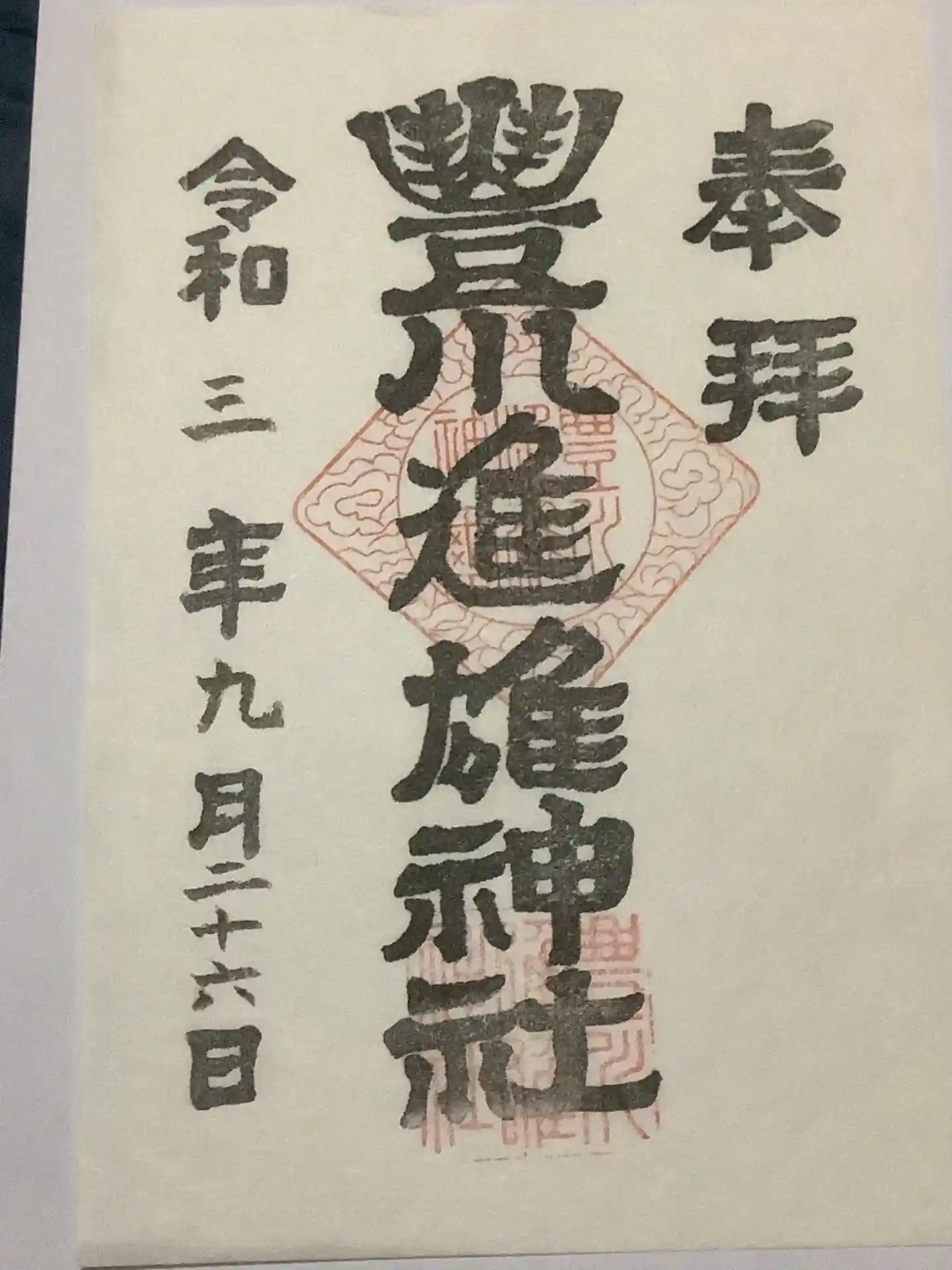 書置きタイプの御朱印です、意外に用紙はペラペラしているので大切に丁寧に扱います。