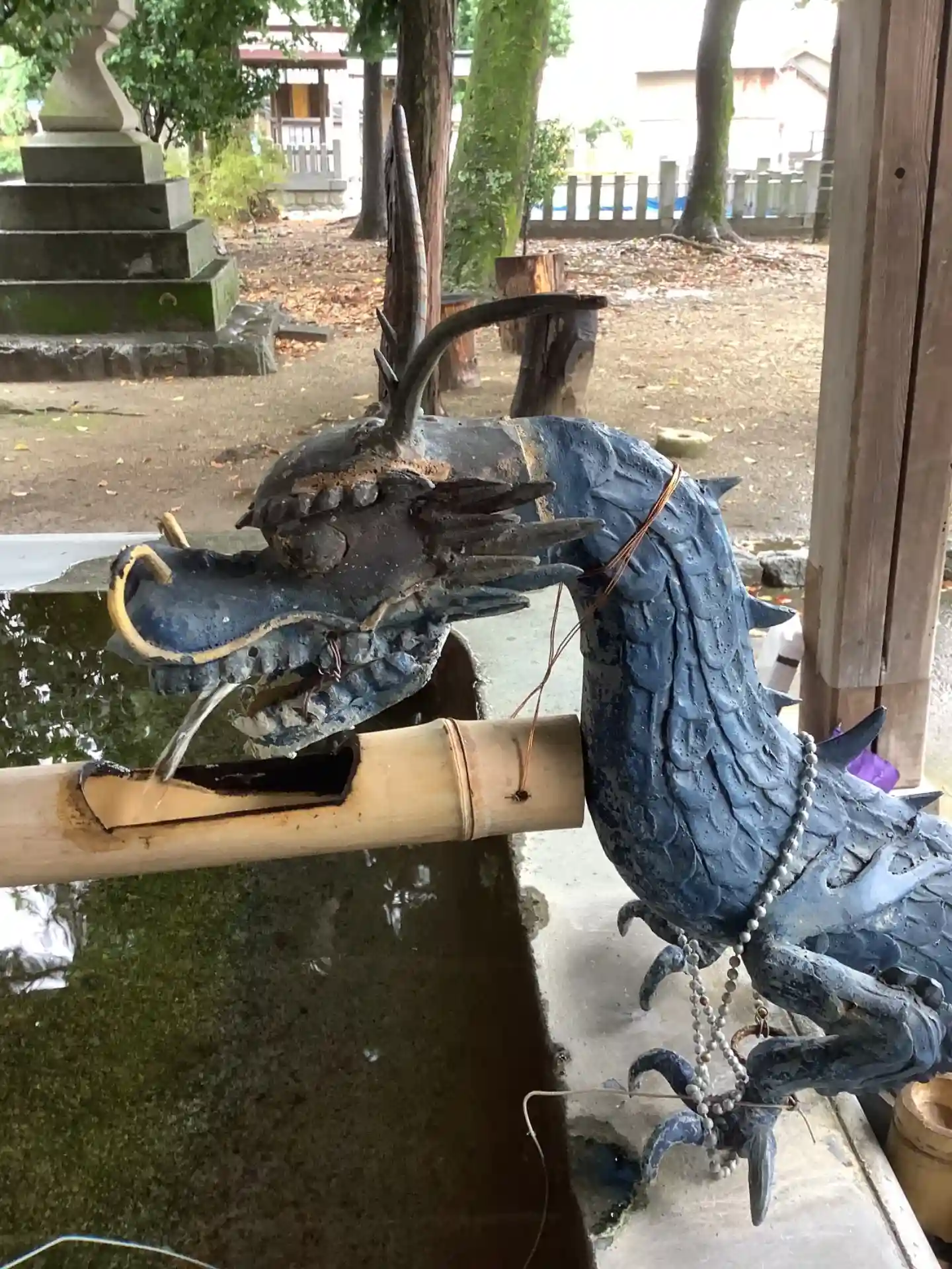 手水舎の吐龍が青く青龍みたいですね。