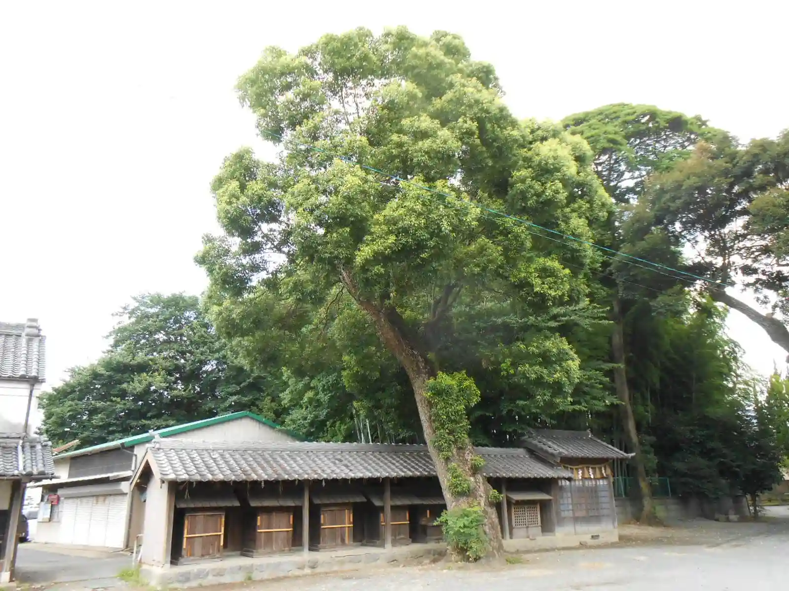 ご神木の椎の木は樹齢約250年のもので、高さは約30m、幹の外周は4.5mあります。