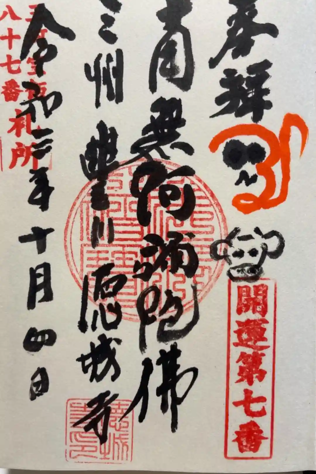 中央の仏法僧宝・霊場・寺院名は参拝者が押印です。
