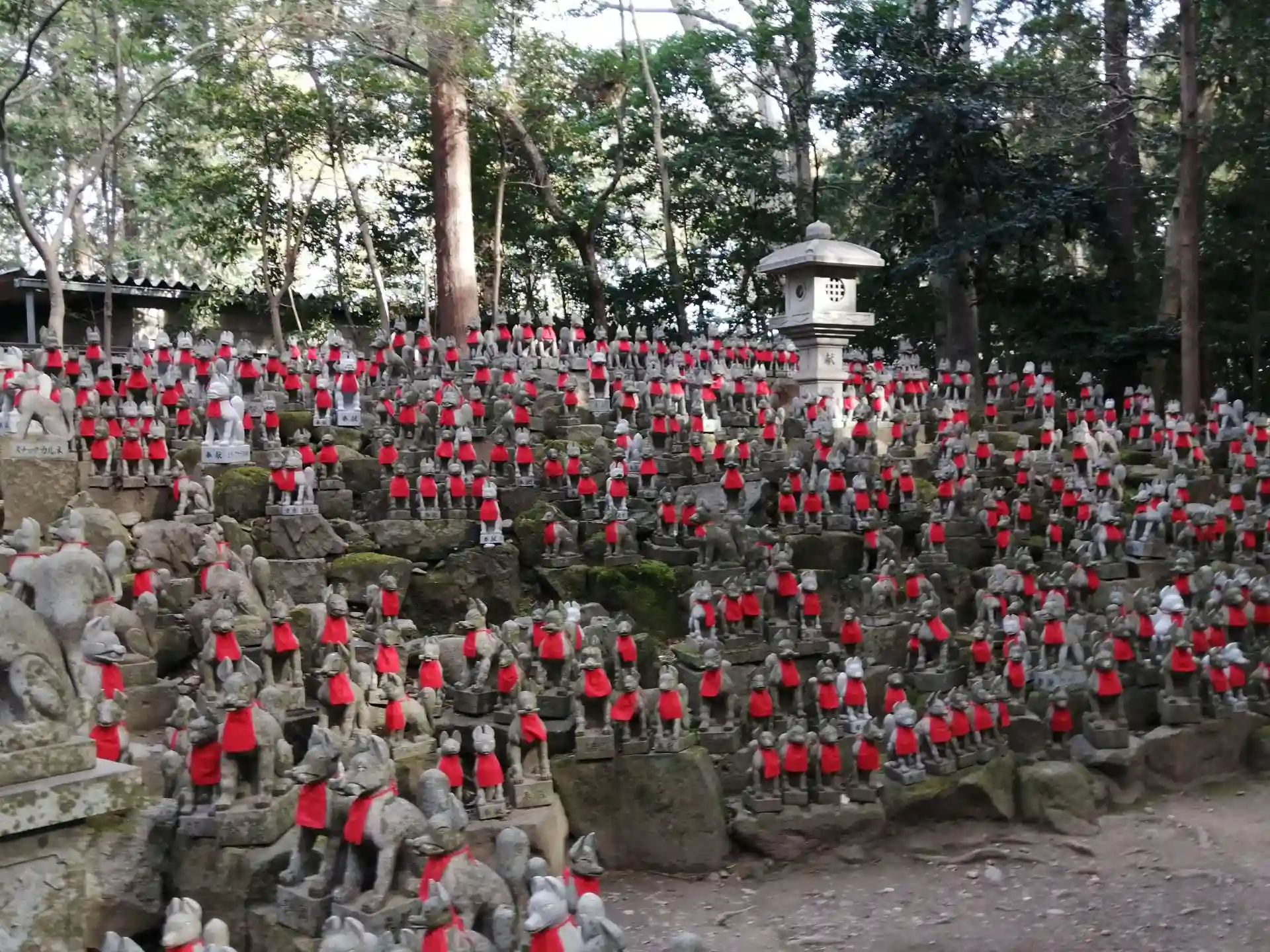 昭和5年に旧本堂を移築して奥の院としていますが、その奥には豊川稲荷で最も有名な狐像が一千体以上ある霊狐塚があります。(伏見稲荷の千本鳥居と同じく、願いが成就したお礼で狐像を寄進)