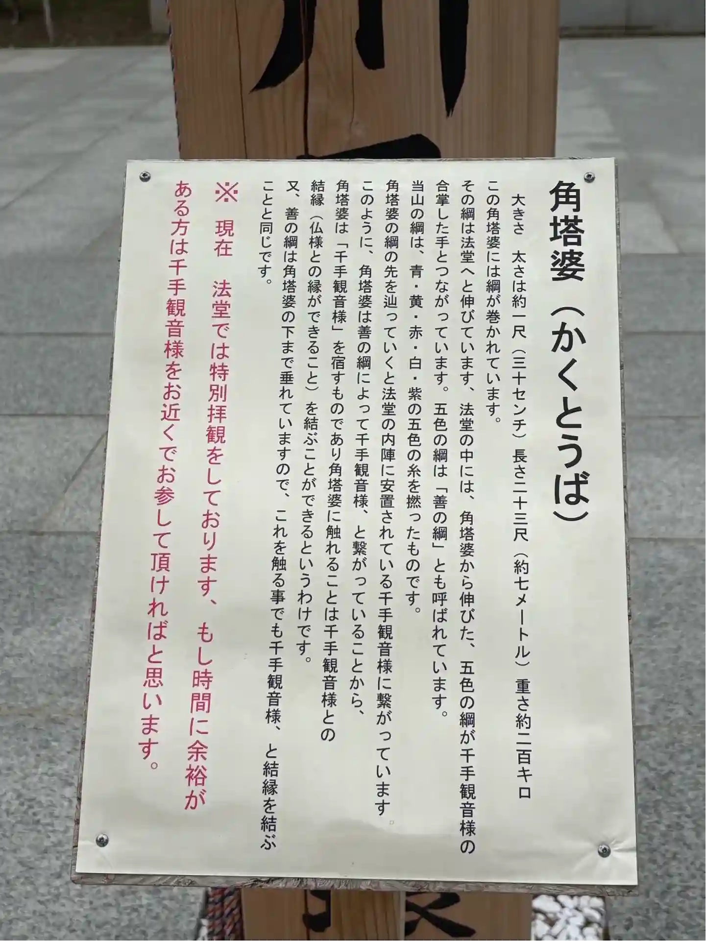 千手観音様と綱が角塔婆で繋がってます