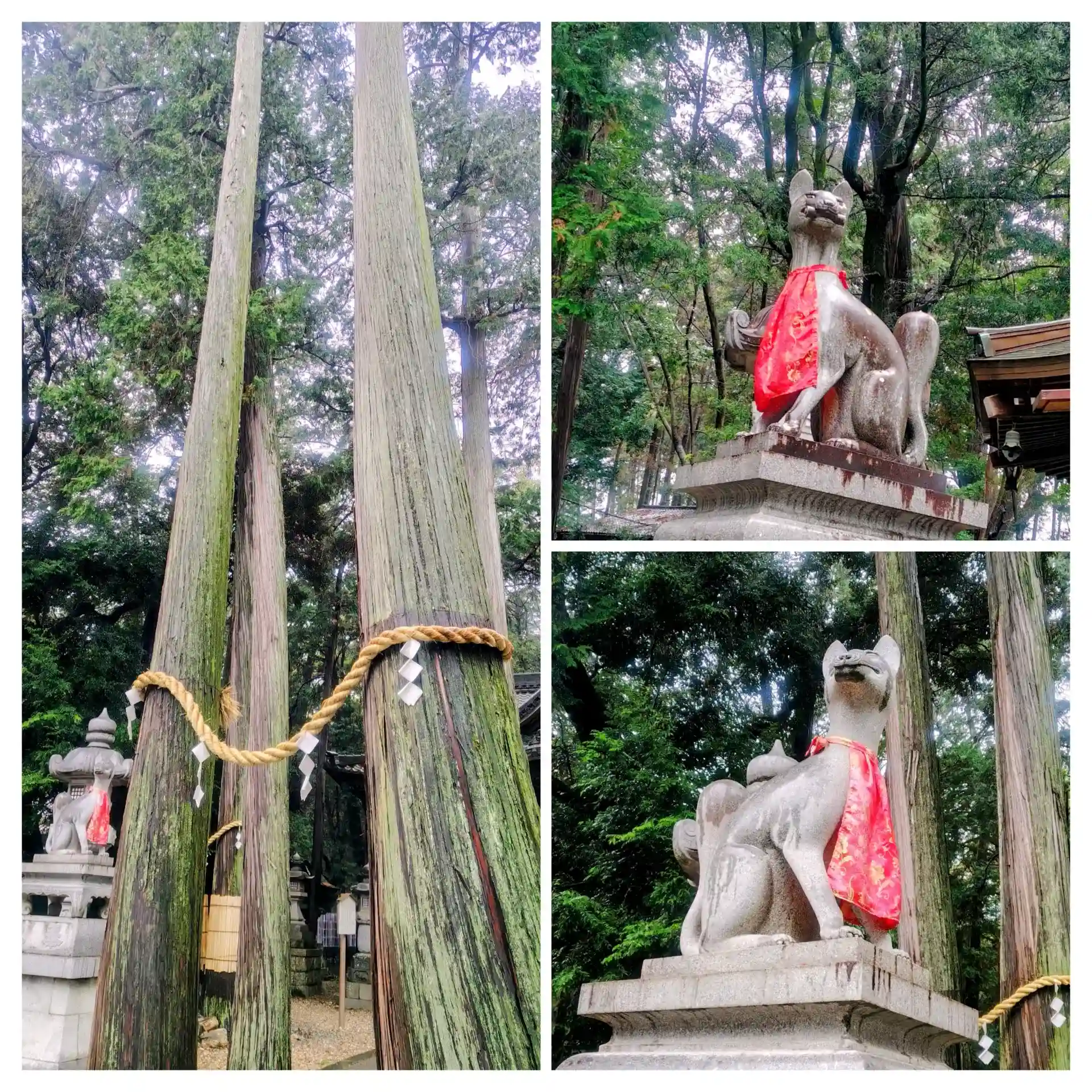 奥の院の前は長い木が何組か重なって生えてました。