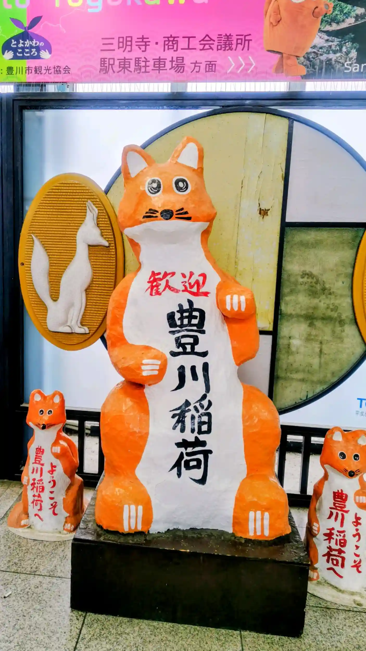 改札出るとすぐ狐さんがお出迎え。