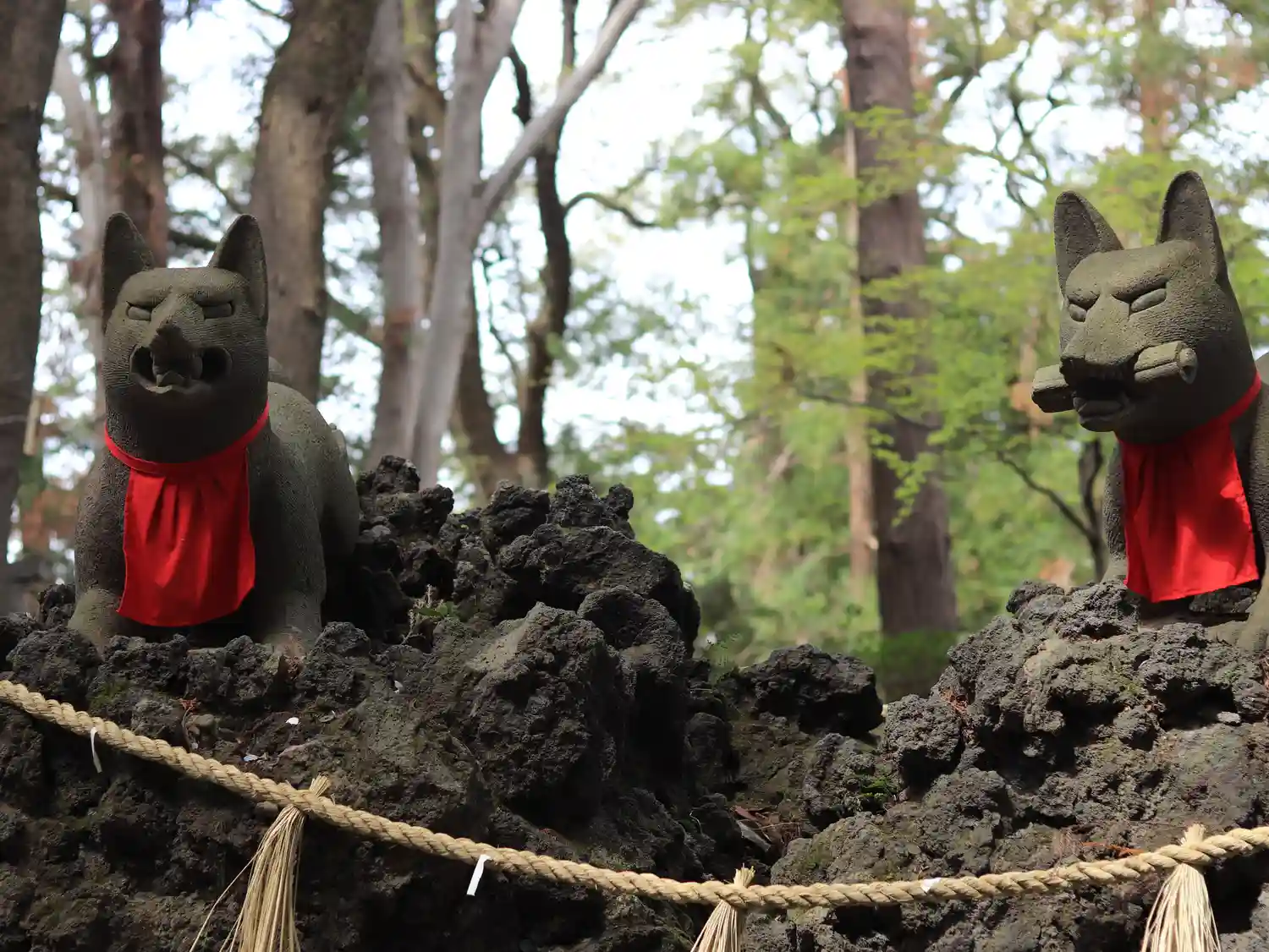 ご利益を頂くため削られた大黒様、奥の院のきつね塚の千体き…