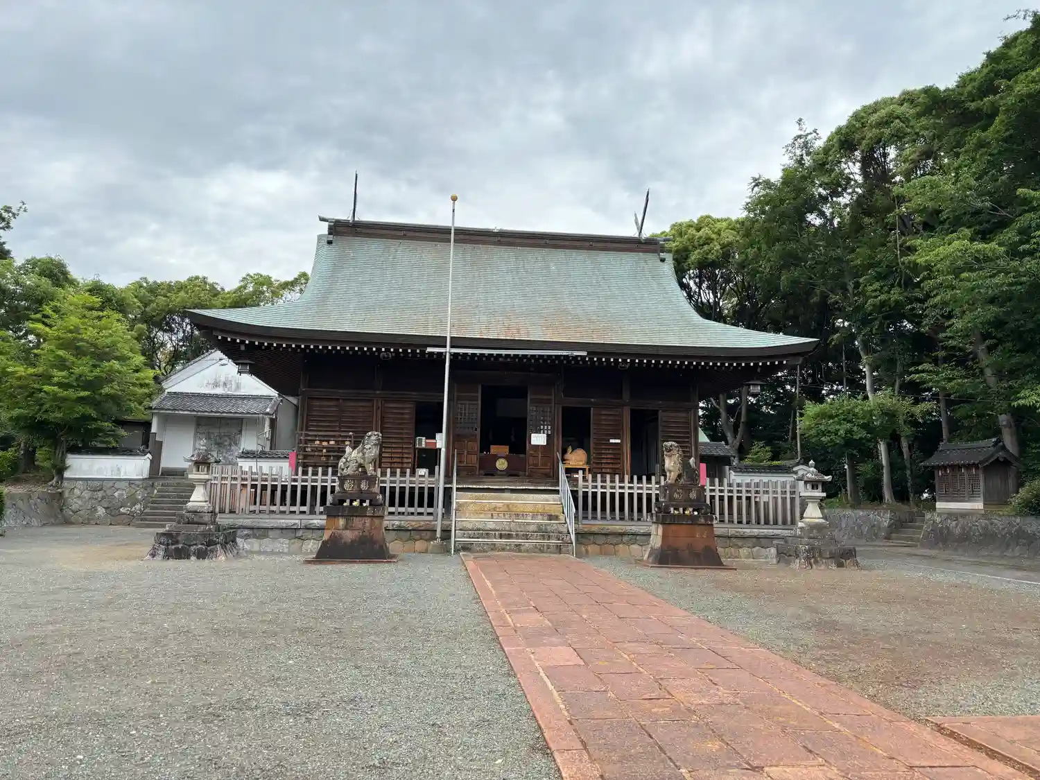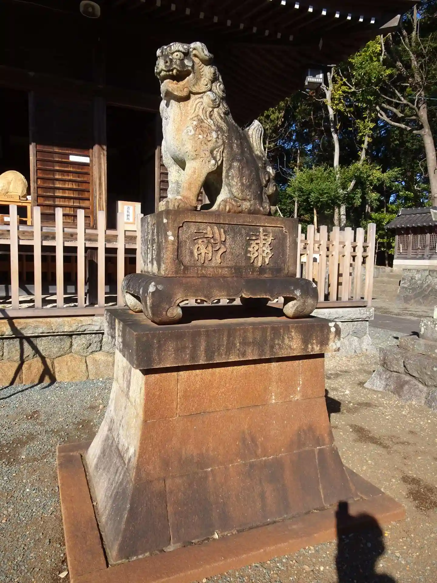 拝殿と狛犬を正面から。