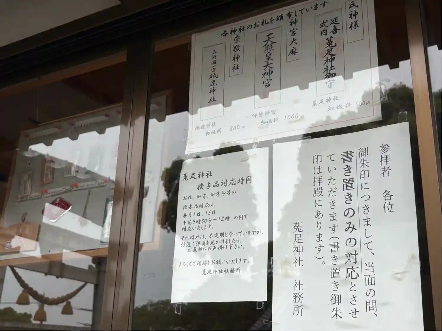 拝殿横に書き置きの御朱印がありました☺️