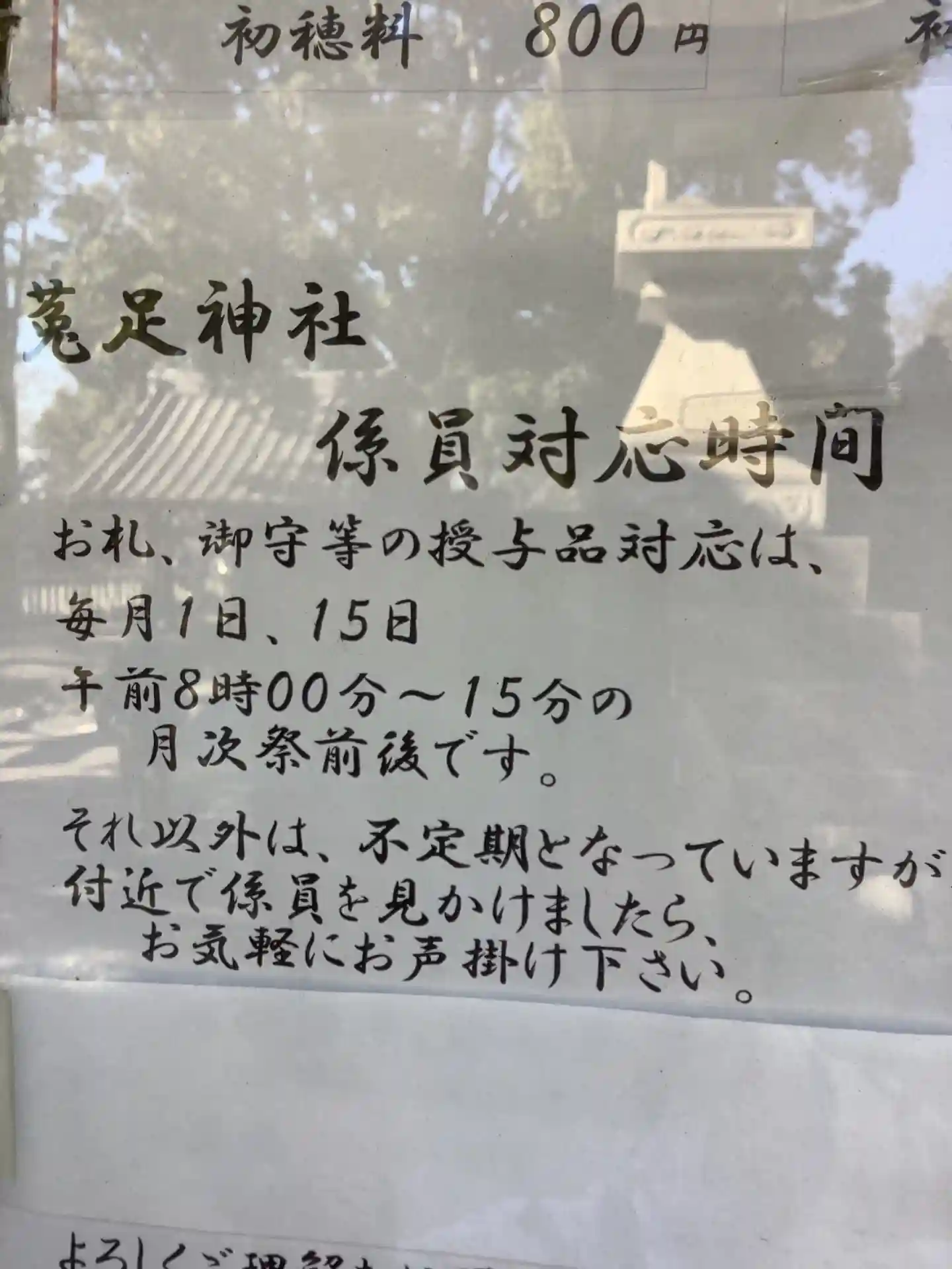 毎月1日15日の9時半〜12時迄しか社務所は開いてない。