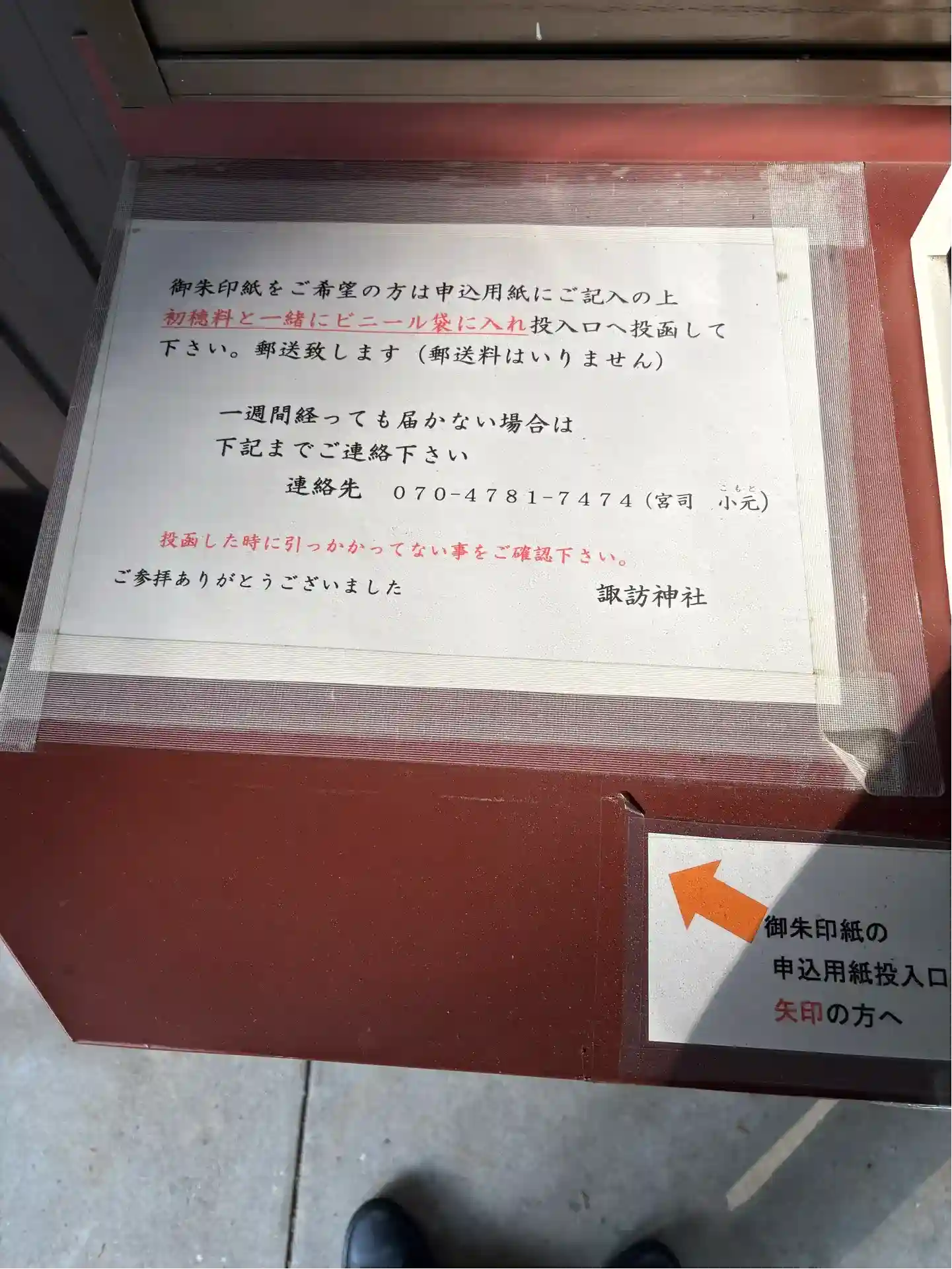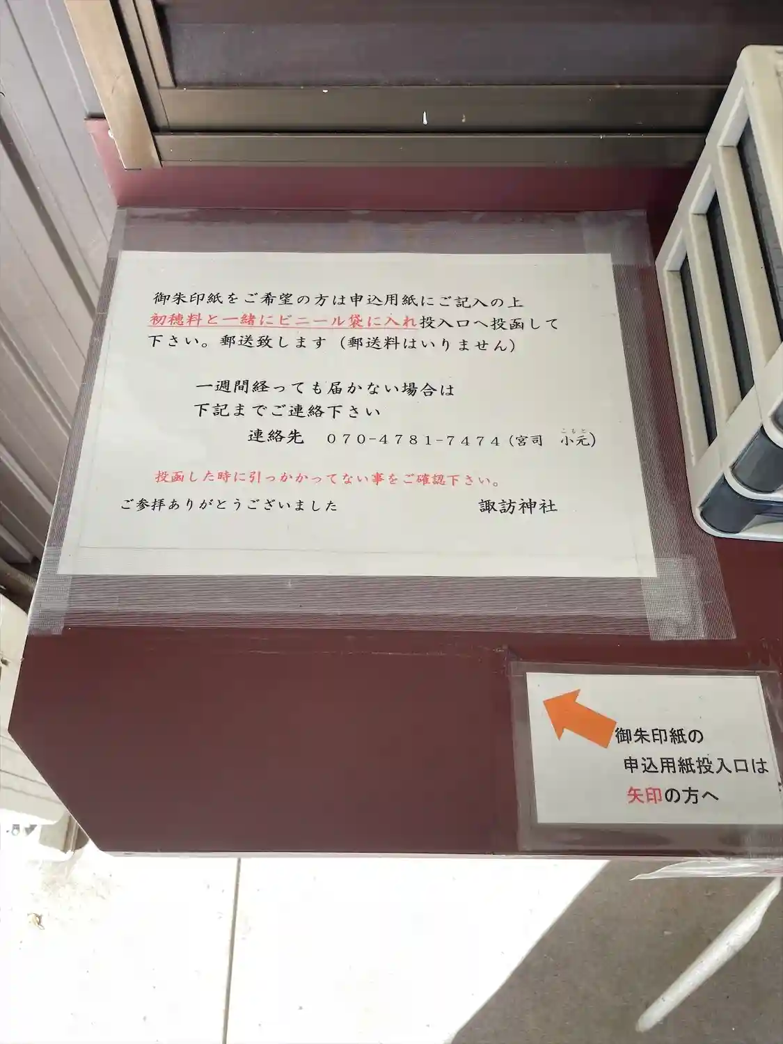 社務所の外に書き置きがあります。