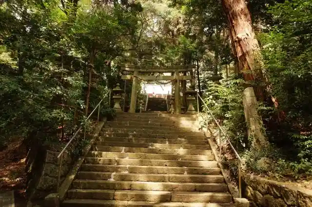 この日8月6日にお祭りのある神社ということで参拝しました。祭礼日の神社でよくあることなのですが、別のお祭り会場(隣の小学校で花火大会)の準備で関係者一同そちらにいて神社はもぬけの殻といいうケースでした。そこそこの境内を持つ神社で田舎の鎮守という感じです。参道の階段の途中に今は使われていない住宅がありました。祢宜さんが住まわれていたのでしょうか。