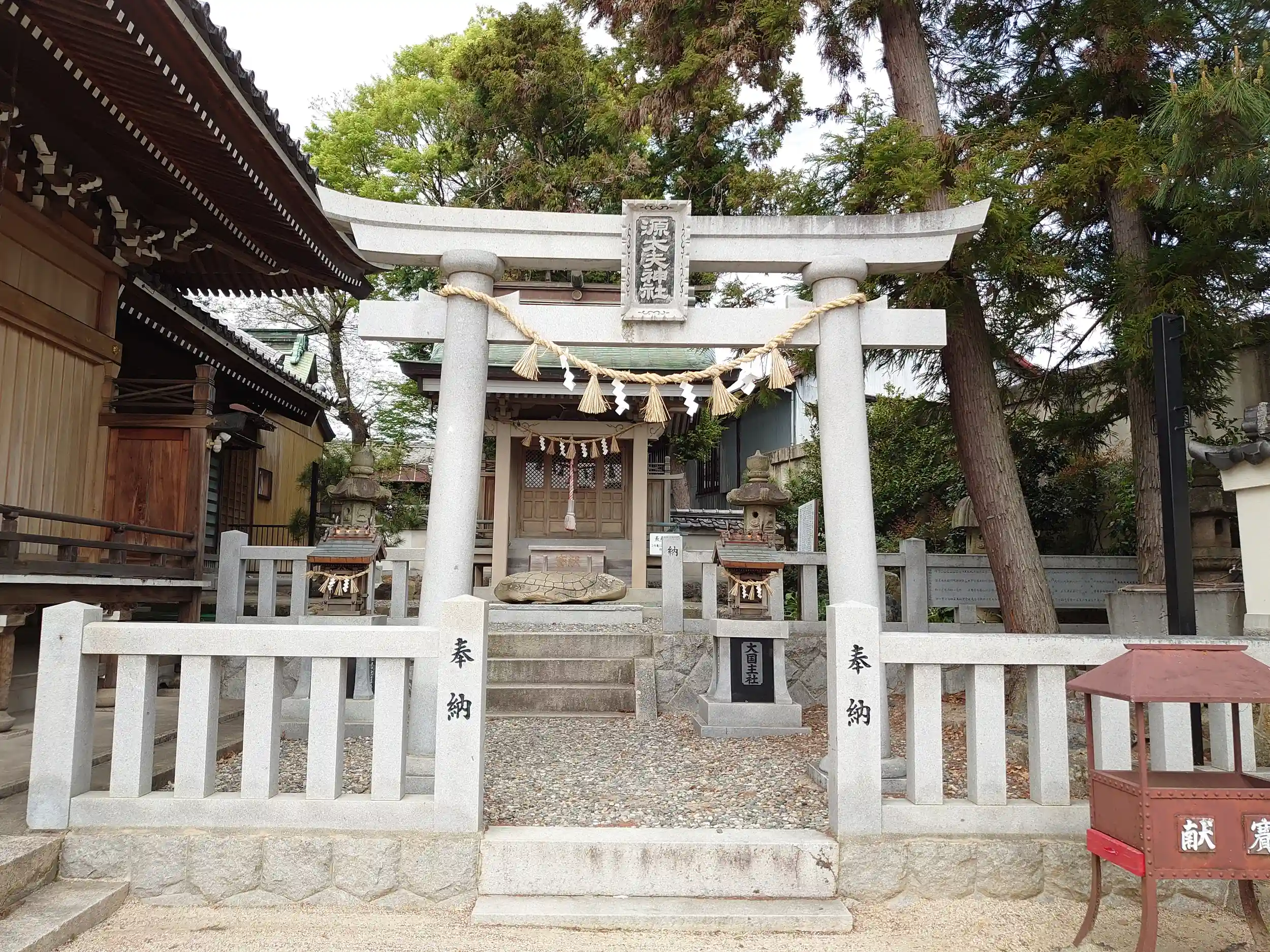 広々としていて、境内社の長寿の亀や水神宮の蛙が可愛らしいです。