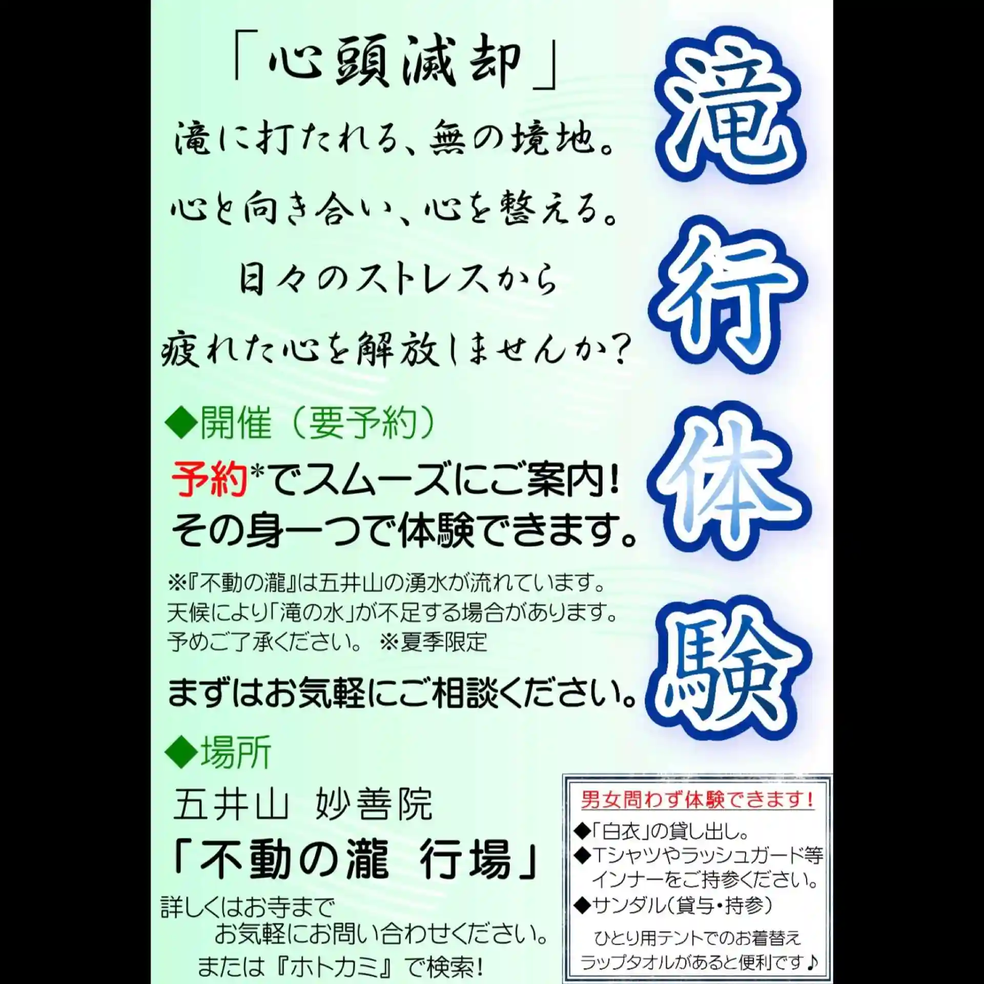【滝行体験】についてのご案内もしております。