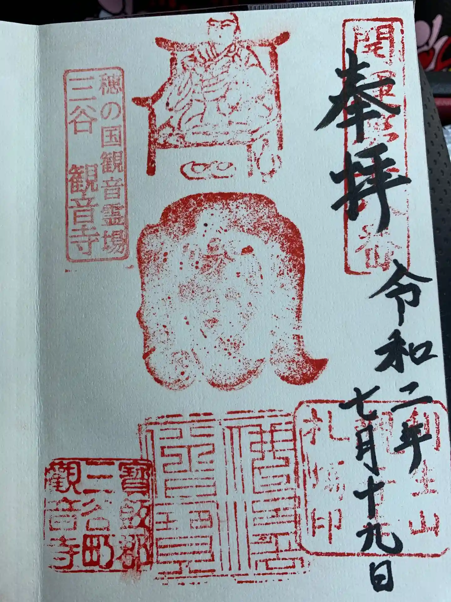 御朱印はやっていないとのことで書いていただけなかったのですが、本堂の中に印があり好きに押していいと言われましたのでそれらしくいただきました。日付は自分で書きました。