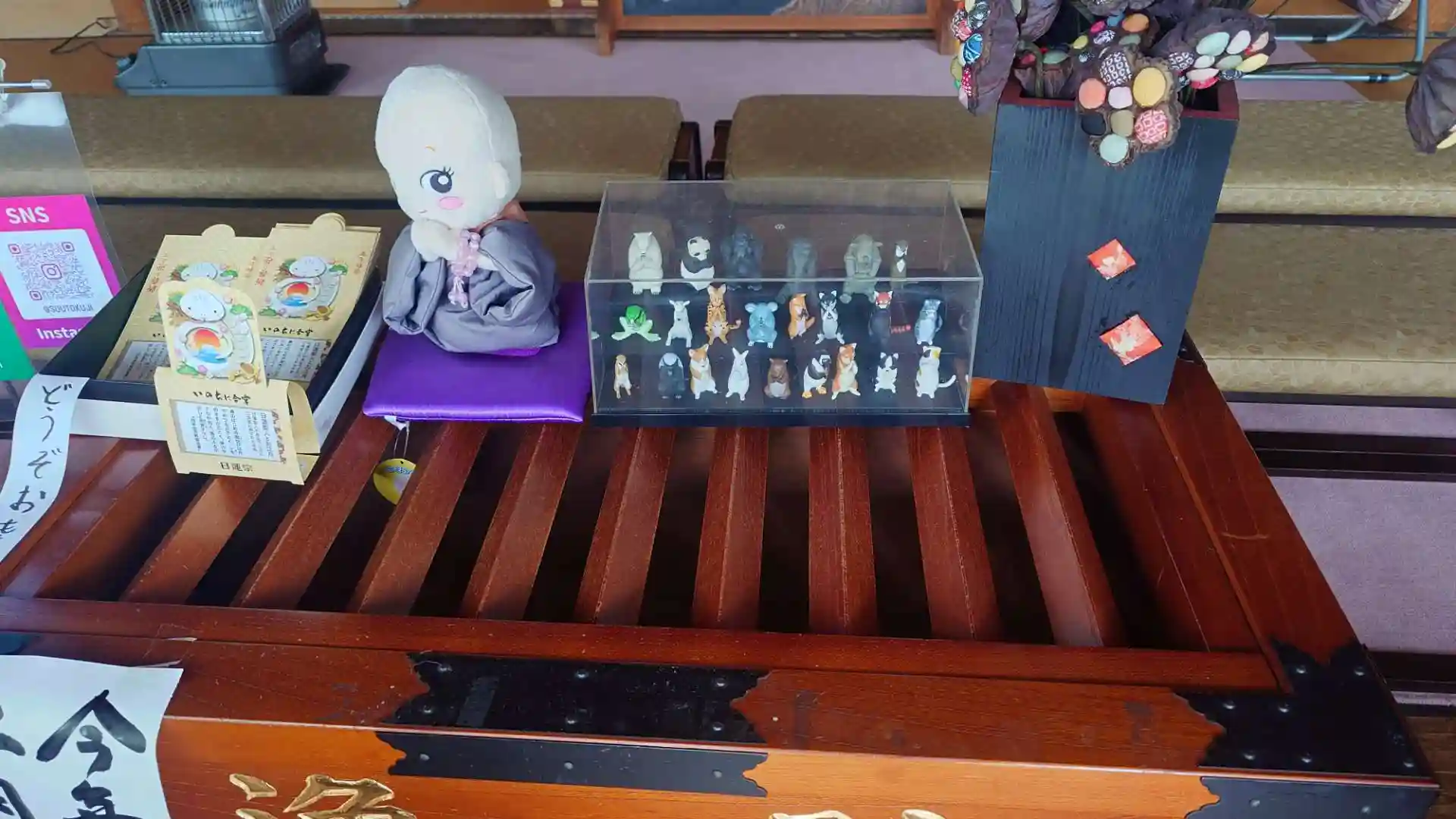 賽銭箱に可愛いフィギュアが飾ってありました。