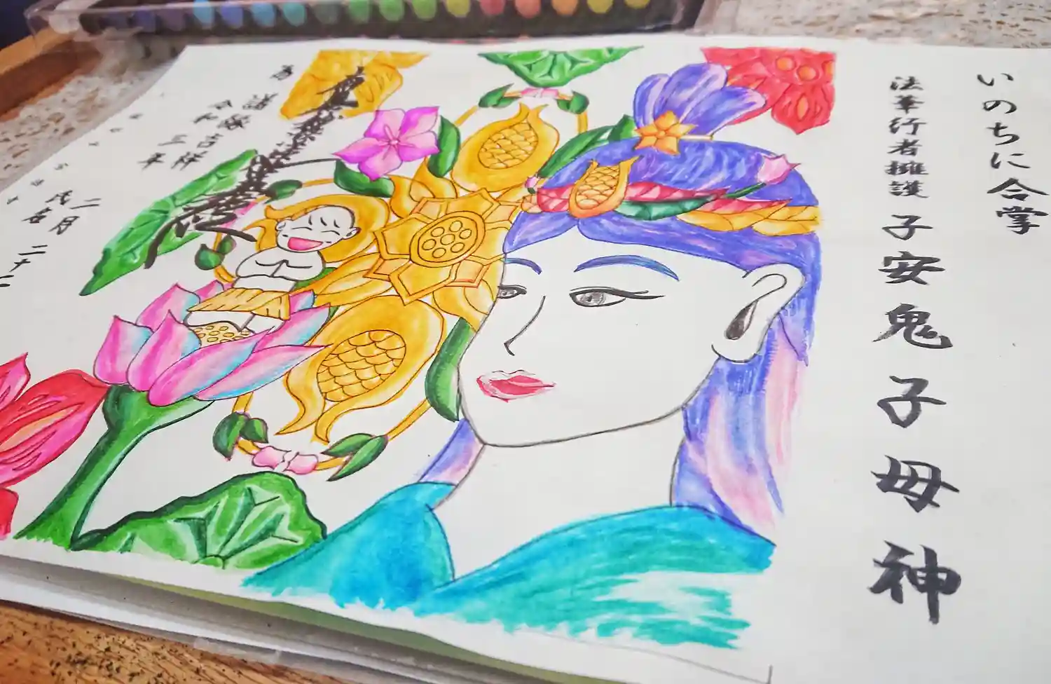 たくさんの子を育てる栄養の為多くの子を食べていたけれど、お釈迦さまに一番可愛がっている末の子を隠され半狂乱になったという🤔
