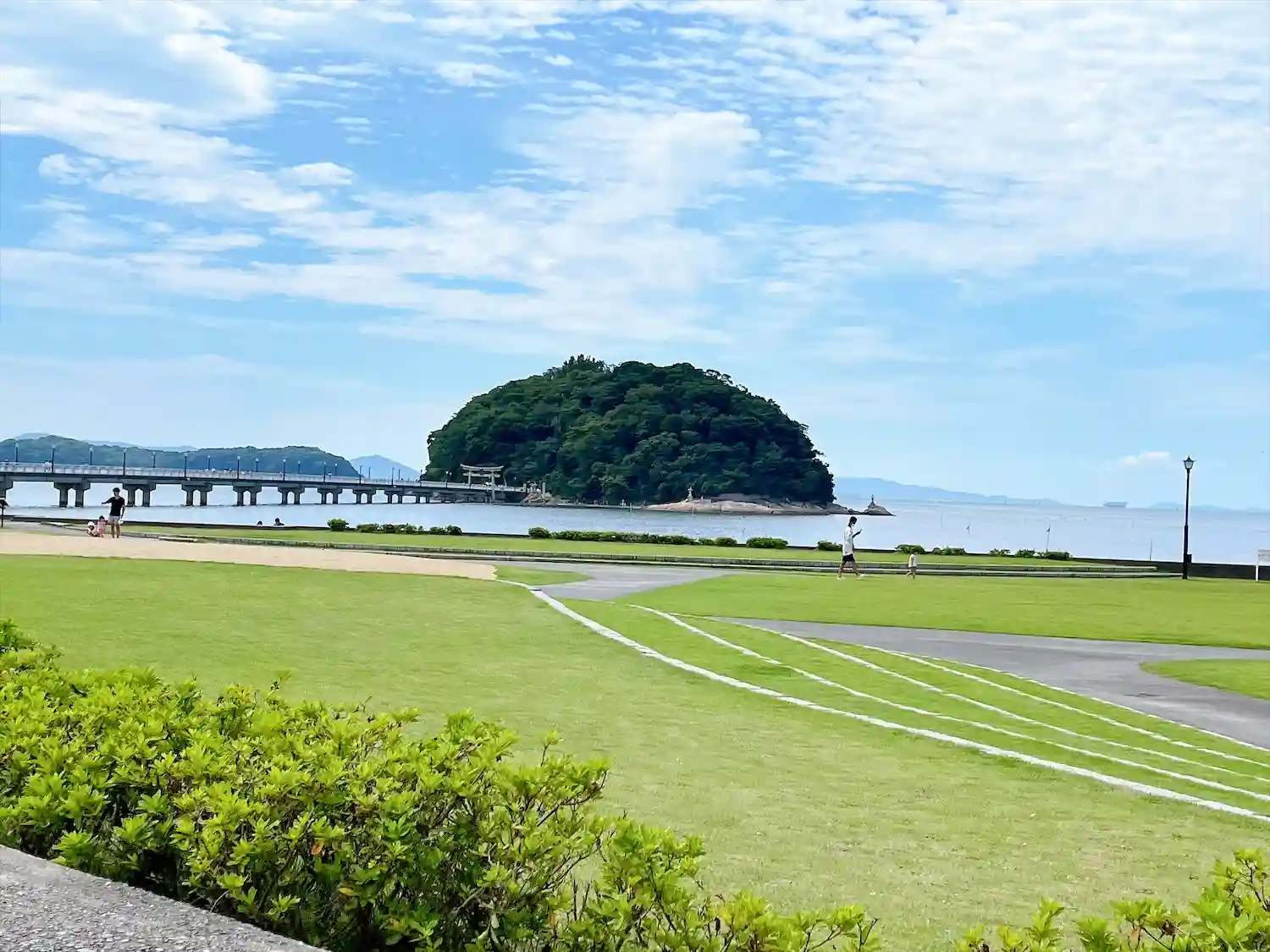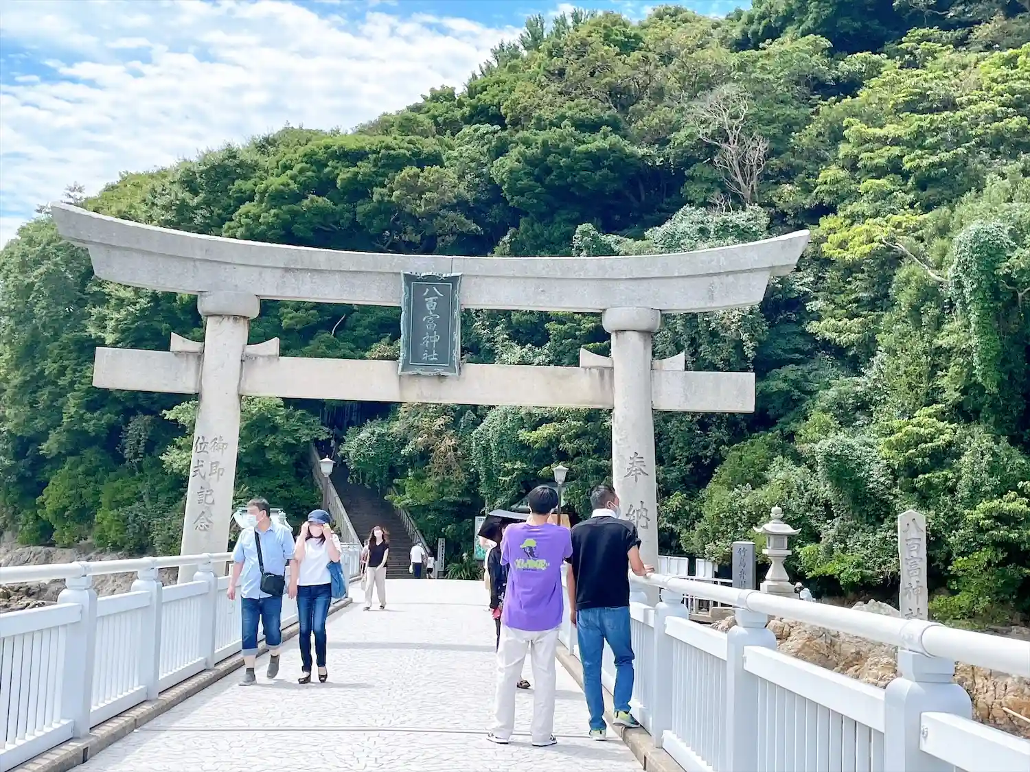 蒲郡市の竹島に浮かぶ八百富神社を参拝⛩橋を歩いて渡って神社に向かいます。八百富神社の境内には宇賀神社、大黒神社、千歳神社、八大龍神社が一緒にあります。
