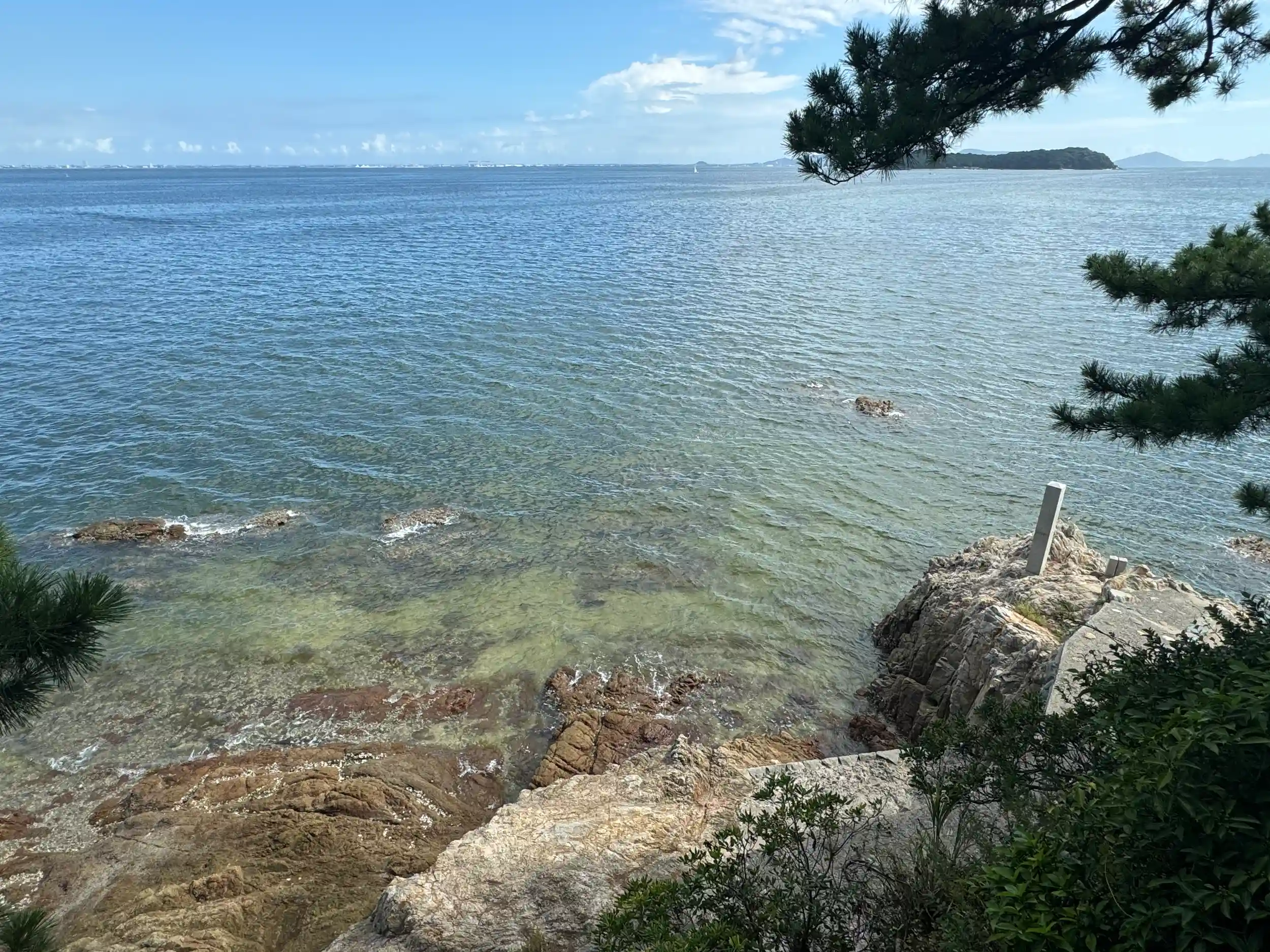 穏やかそうで綺麗な海が見える素敵な神社ですね✨