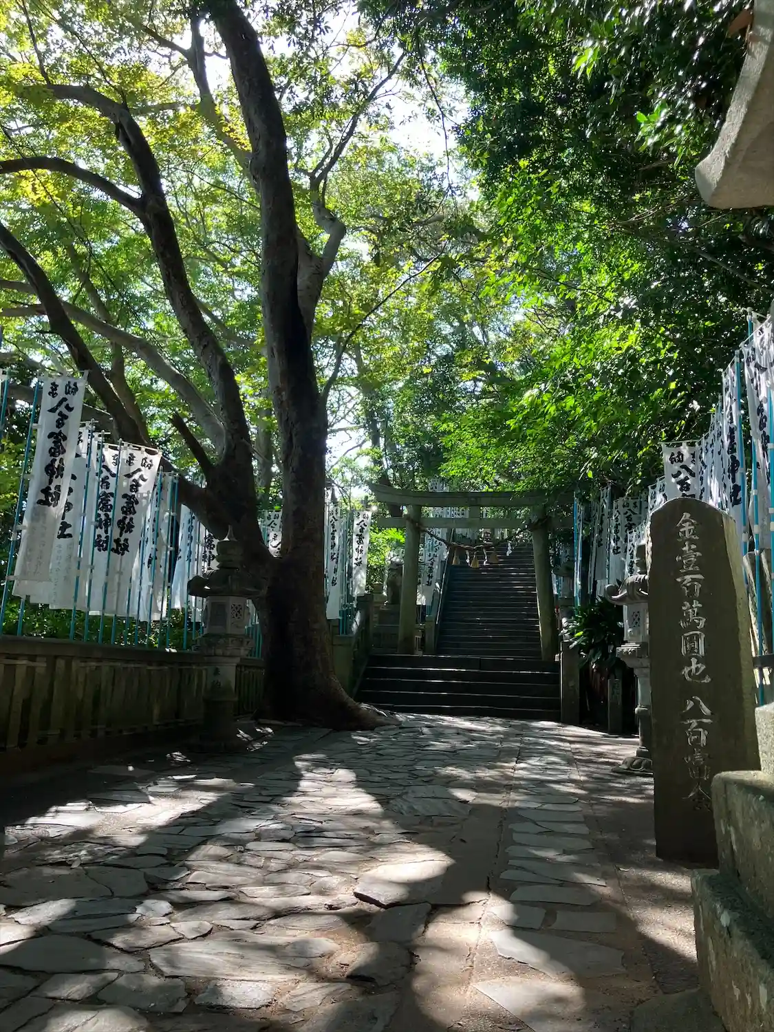 この島には、八百富神社、宇賀神社、八大龍神社、大黒神社、千歳神社の五社が祀られています。
