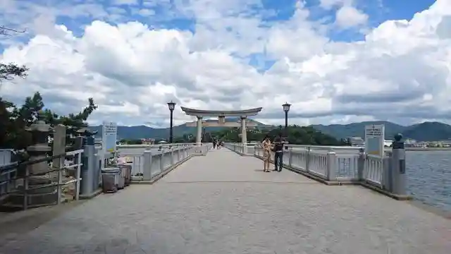 海を渡る桟橋?参道?が如何にもこれから神社を参拝するという雰囲気になりま…