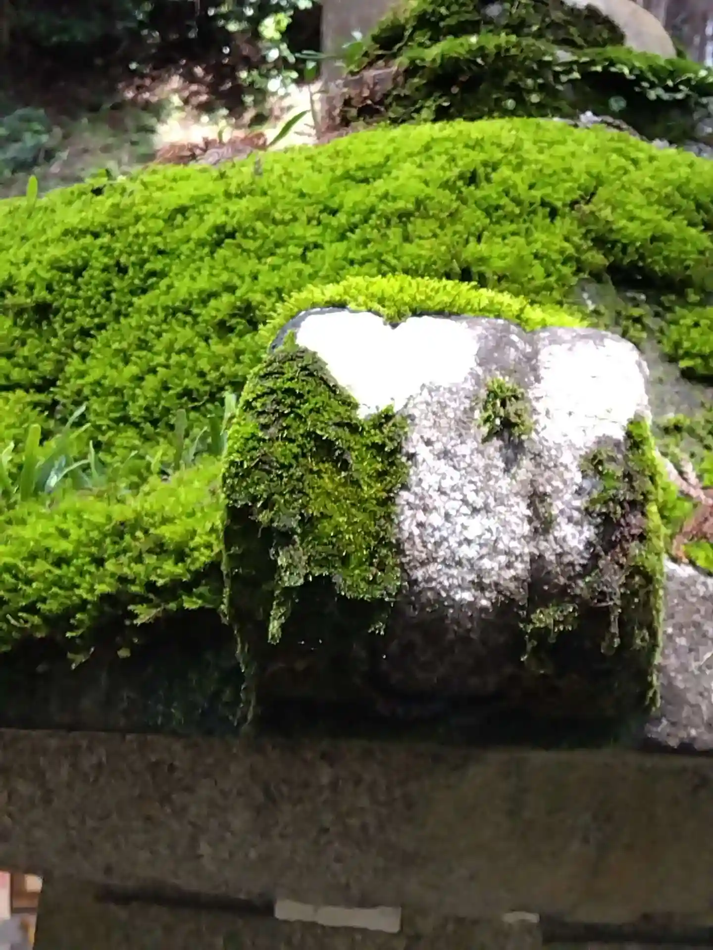 昭和15年寄進の2代目狛犬さん。弾除けの御守りとして欠かれてしまった。奥の丸石が初代?