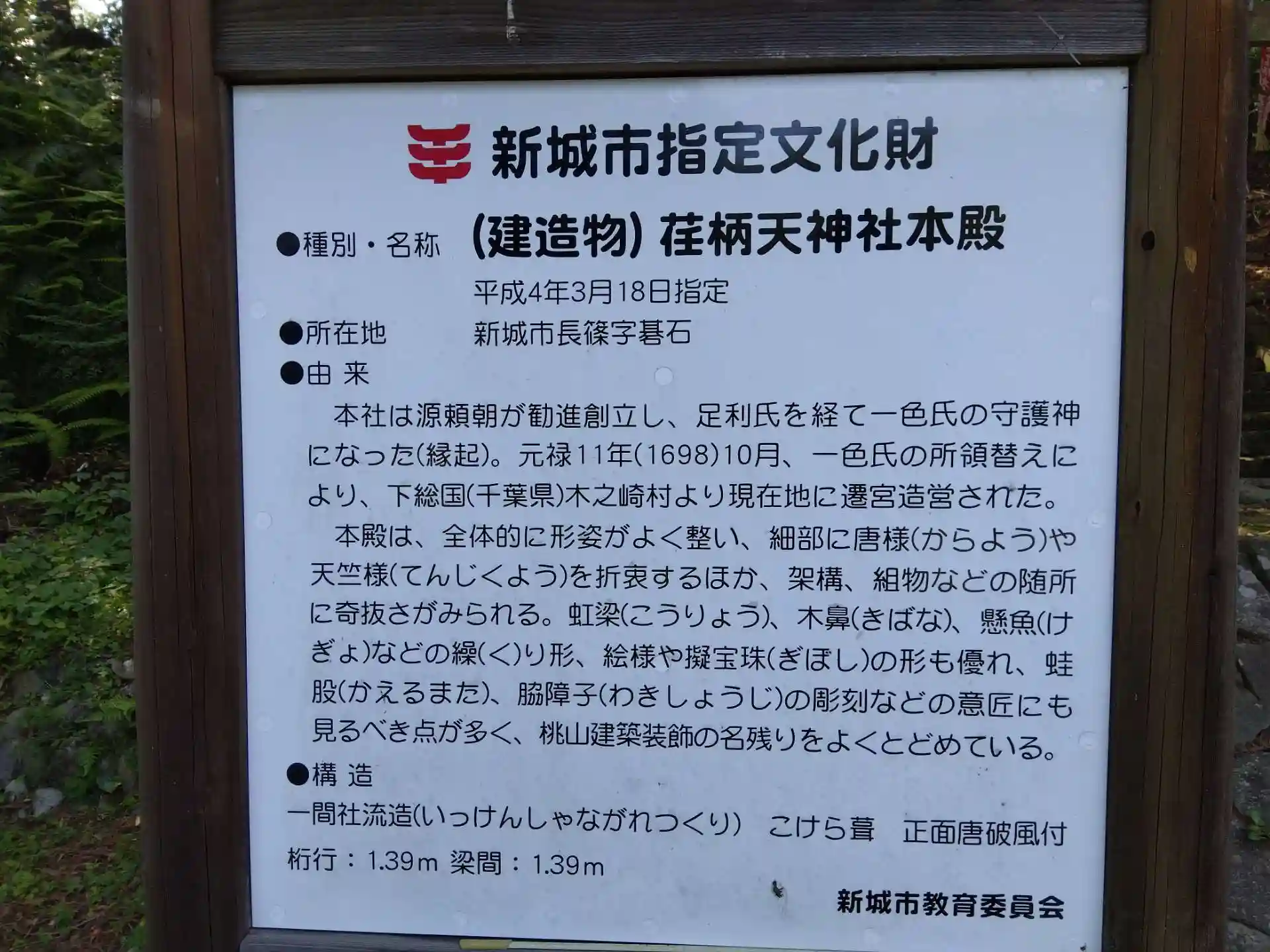 旧長篠村を支配していた一色氏の守護神で、鎌倉の荏柄天神の移し。