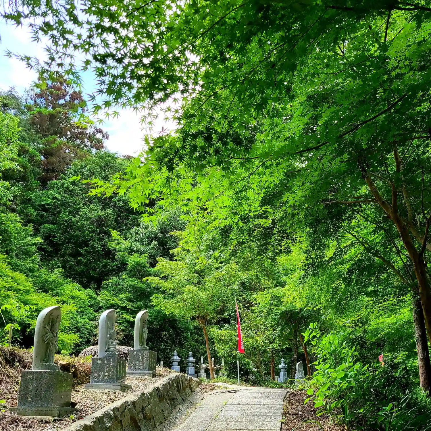 境内西側のかんのん道が特に青もみじが
