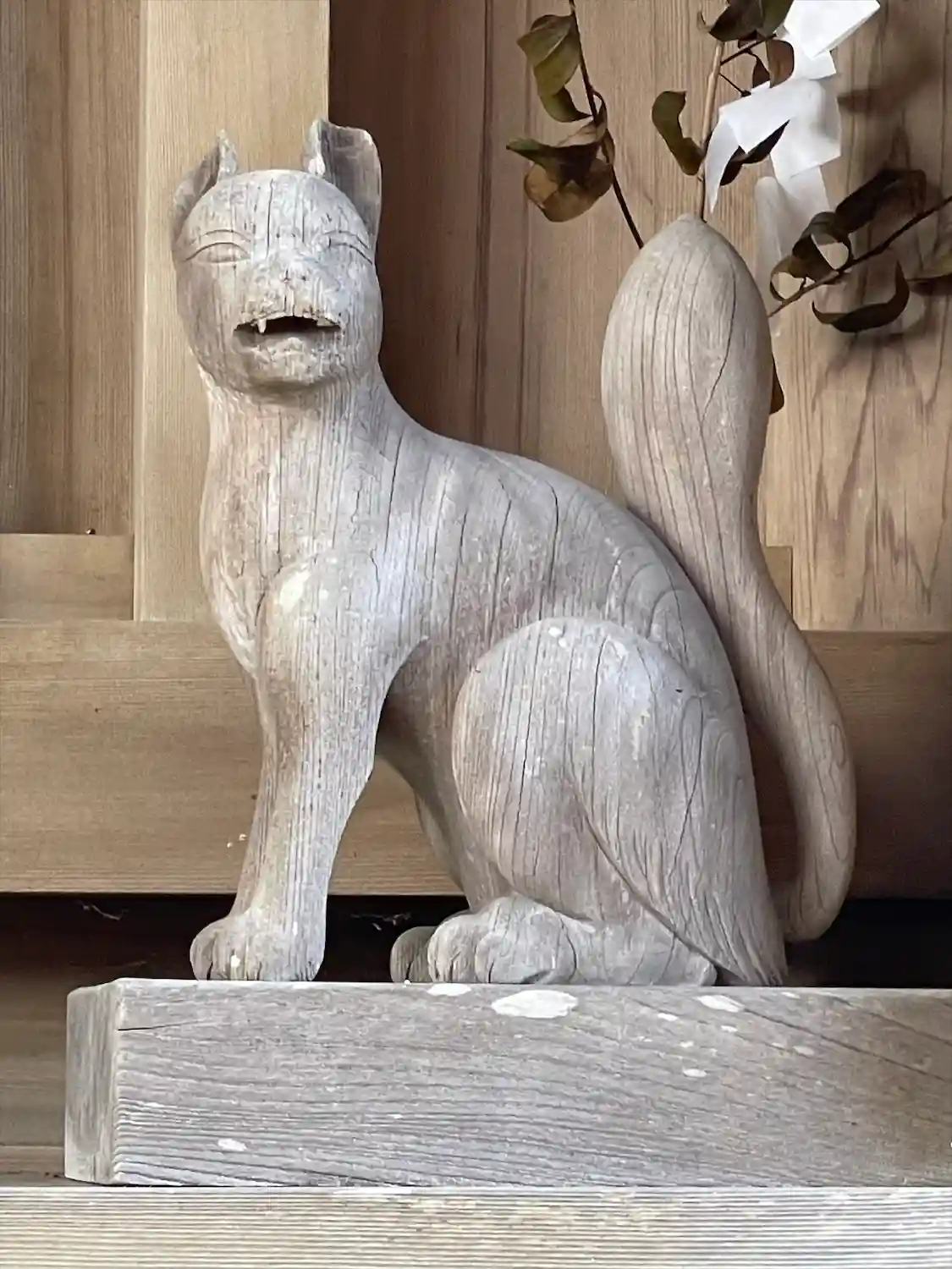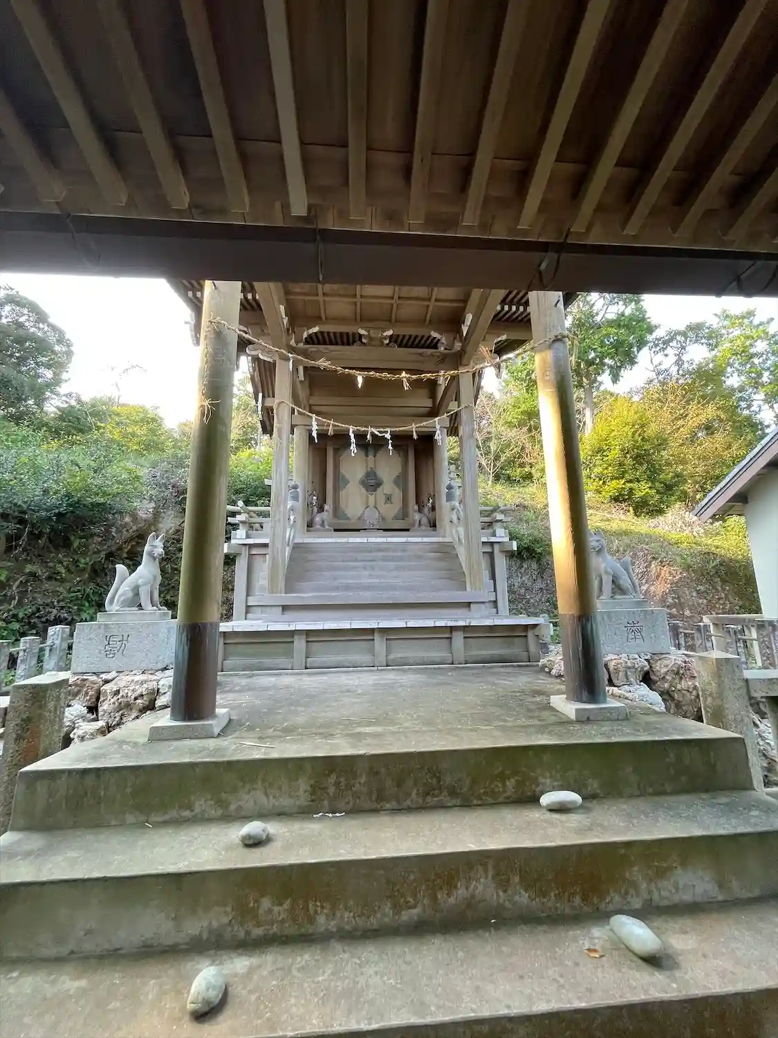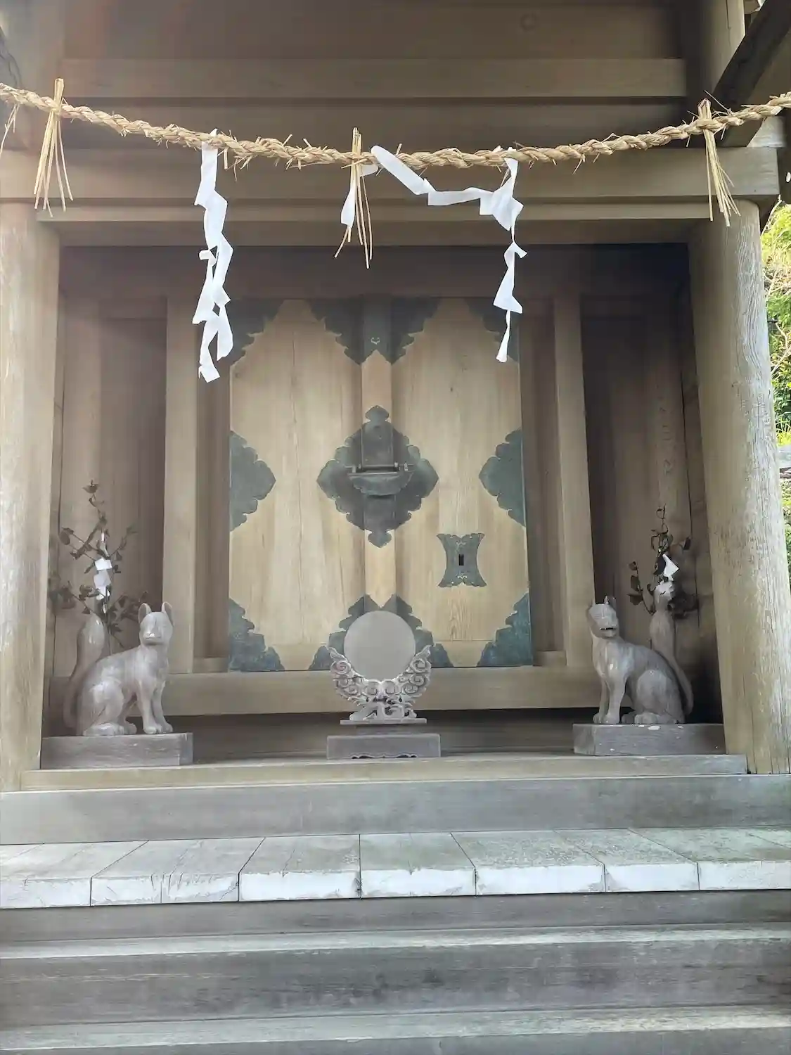 本殿の木造の狐が素晴らしい。