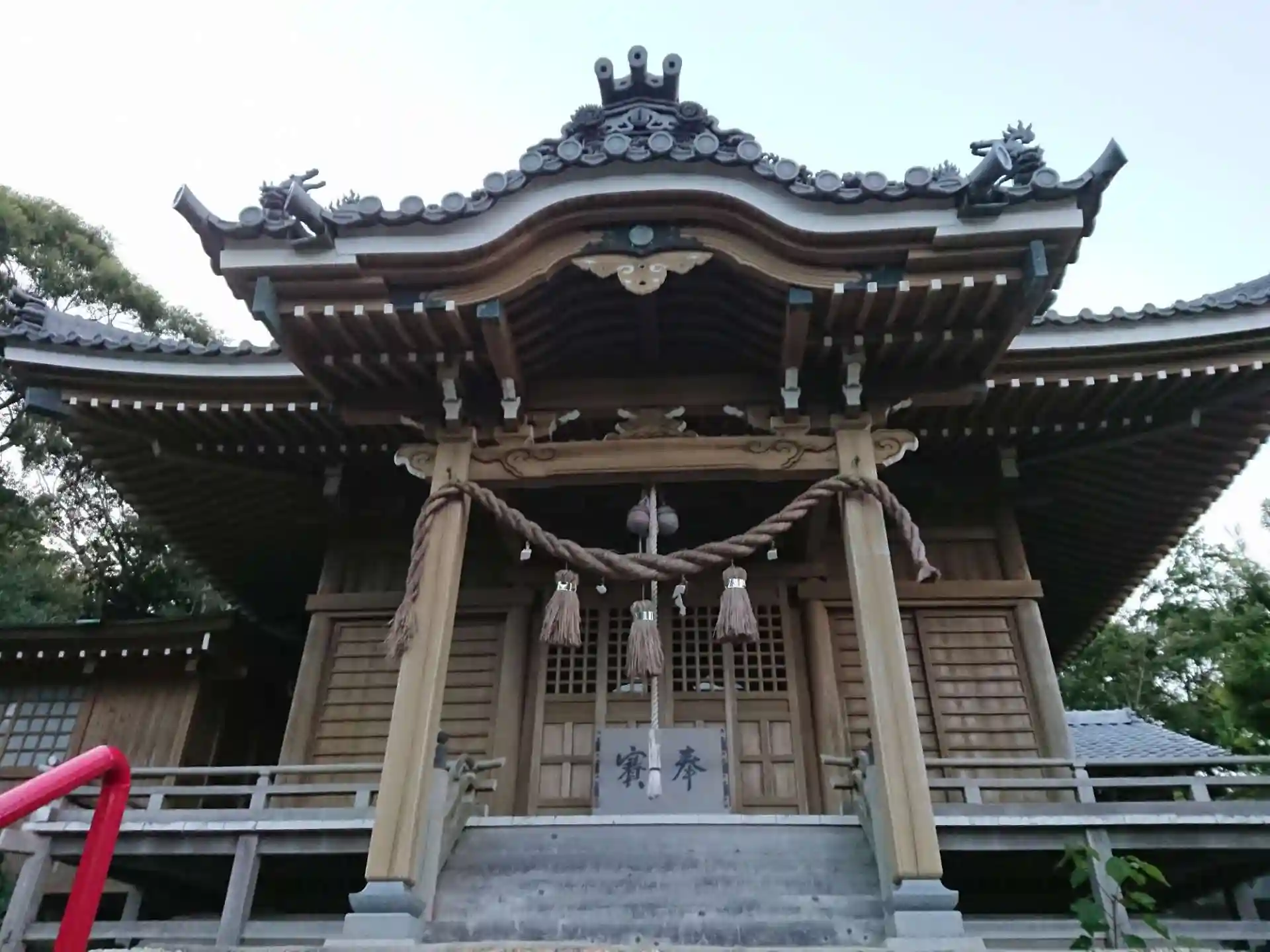 石段の赤い鳥居が綺麗でした。足段を上った後の社殿が立派です。