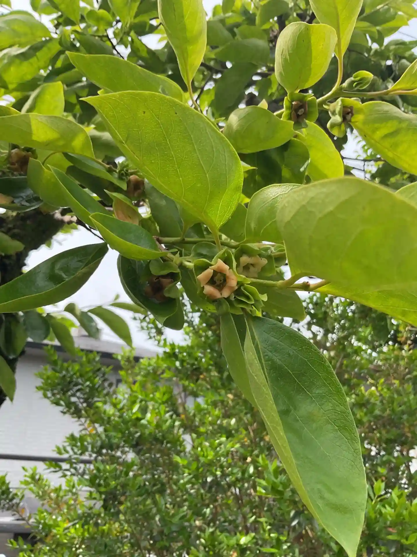 ちょっと珍しい柿の花、地味な色合い💦